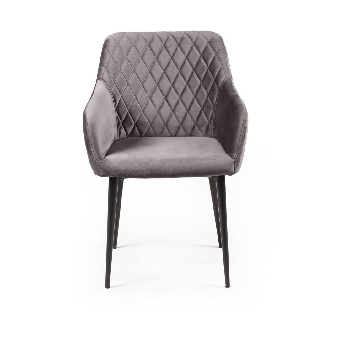 Роскошный и уютный стул в стиле арт-деко. Смотрится дорого, стильно и эффектно. Он создан, чтобы очаровывать с первого взгляда. Плавные линии, изящные ножки, просторное сиденье и высокие подлокотники делают модель невероятно удобной для отдыха. Стильная отделка ромбом на спинке и сиденье в сочетании с благородным бархатом создает неповторимые переливы и придает стулу особую утонченность. Поворотный механизмам на 90 градусов – это минимум перемещений – максимум комфорта: с такими стульями вам не придется передвигать мебель, чтобы встать из-за стола или развернуться к собеседнику. Обивка Мягкий бархатистый велюр, высококачественный материал с повышенной износостойкостью. Он прост в уходе и не потеряет достойный вид долгое время. Ткань прочная, специально предназначена для ежедневного использования дома или в заведениях общественного типа (кафе, рестораны). Наполнитель В качестве наполнителя используется литой (формованный) пенополиуретан высокой плотности. Даже при длительном использовании он не теряет форму и не деформируется. Такое наполнение гарантирует долгий срок службы изделия, что особенно важно для коммерческого использования (при эксплуатации в сегменте HоReCa). Ножки Изюминка стула Robert – металлические ножки черного матового цвета (могут быть белыми), излишне скошенные назад, как часть дизайнерской задумки. На ножках предусмотрены специальные пластиковые накладки, которые придают стулу дополнительную устойчивость и защищают пол от царапин. Гарантия Тщательная проверка качества изделий осуществляется на всех этапах производства: от подбора материалов и комплектующих до проверки готового изделия перед отправкой. На все изделия Top concept мы предоставляем гарантию 18 месяцев.