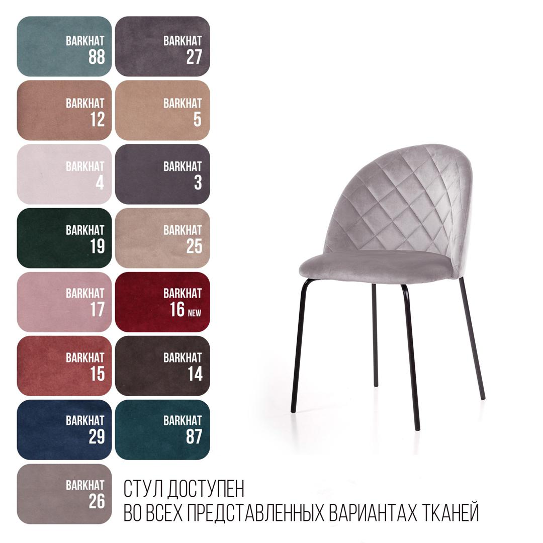 strong*Оттенок может выглядеть по-разному в зависимости от направления ворса./strong Стул «Норд» уютный и лаконичный. Стильная модель отличается простотой, гармоничностью и ясностью композиции. Модель обладает плавными линиями, полукруглой изогнутой спинкой и широким сиденьем, Главным декоративным элементом модели является ромбовидная отстрочка с лицевой части спинки, которая визуально придает мягкость модели. Изящные опоры придают стулу особый шарм и могут быть выполнены в матовом черном цвете. Удобство посадки Спинка изогнутой формы обеспечивает боковую поддержку спины. Каркас Надежный гнутоклееный каркас из шпона - основа безопасного и спокойного отдыха. Наполнитель В качестве наполнителя используется пенополиуретан высокой плотности. При ежедневной эксплуатации на протяжении длительного времени он сохранит первоначальную форму. Данное наполнение - это гарантия продолжительного срока службы изделия, что особенно важно для коммерческого использования. Опоры Металлические ножки окрашены в черный матовый цвет, расположены так, чтобы обеспечивать абсолютную устойчивость и защитить стул от раскачивания. На ножках предусмотрены специальные пластиковые накладки, которые защищают пол от царапин. Гарантия Тщательная проверка качества изделий осуществляется на всех этапах производства: от подбора материалов и комплектующих до проверки готового изделия перед отправкой. На все изделия Top concept мы предоставляем гарантию 18 месяцев.