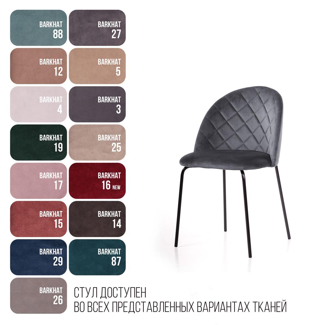 strong*Оттенок может выглядеть по-разному в зависимости от направления ворса./strong Стул «Норд» уютный и лаконичный. Стильная модель отличается простотой, гармоничностью и ясностью композиции. Модель обладает плавными линиями, полукруглой изогнутой спинкой и широким сиденьем, Главным декоративным элементом модели является ромбовидная отстрочка с лицевой части спинки, которая визуально придает мягкость модели. Изящные опоры придают стулу особый шарм и могут быть выполнены в матовом черном цвете. Удобство посадки Спинка изогнутой формы обеспечивает боковую поддержку спины. Каркас Надежный гнутоклееный каркас из шпона - основа безопасного и спокойного отдыха. Наполнитель В качестве наполнителя используется пенополиуретан высокой плотности. При ежедневной эксплуатации на протяжении длительного времени он сохранит первоначальную форму. Данное наполнение - это гарантия продолжительного срока службы изделия, что особенно важно для коммерческого использования. Опоры Металлические ножки окрашены в черный матовый цвет, расположены так, чтобы обеспечивать абсолютную устойчивость и защитить стул от раскачивания. На ножках предусмотрены специальные пластиковые накладки, которые защищают пол от царапин. Гарантия Тщательная проверка качества изделий осуществляется на всех этапах производства: от подбора материалов и комплектующих до проверки готового изделия перед отправкой. На все изделия Top concept мы предоставляем гарантию 18 месяцев.