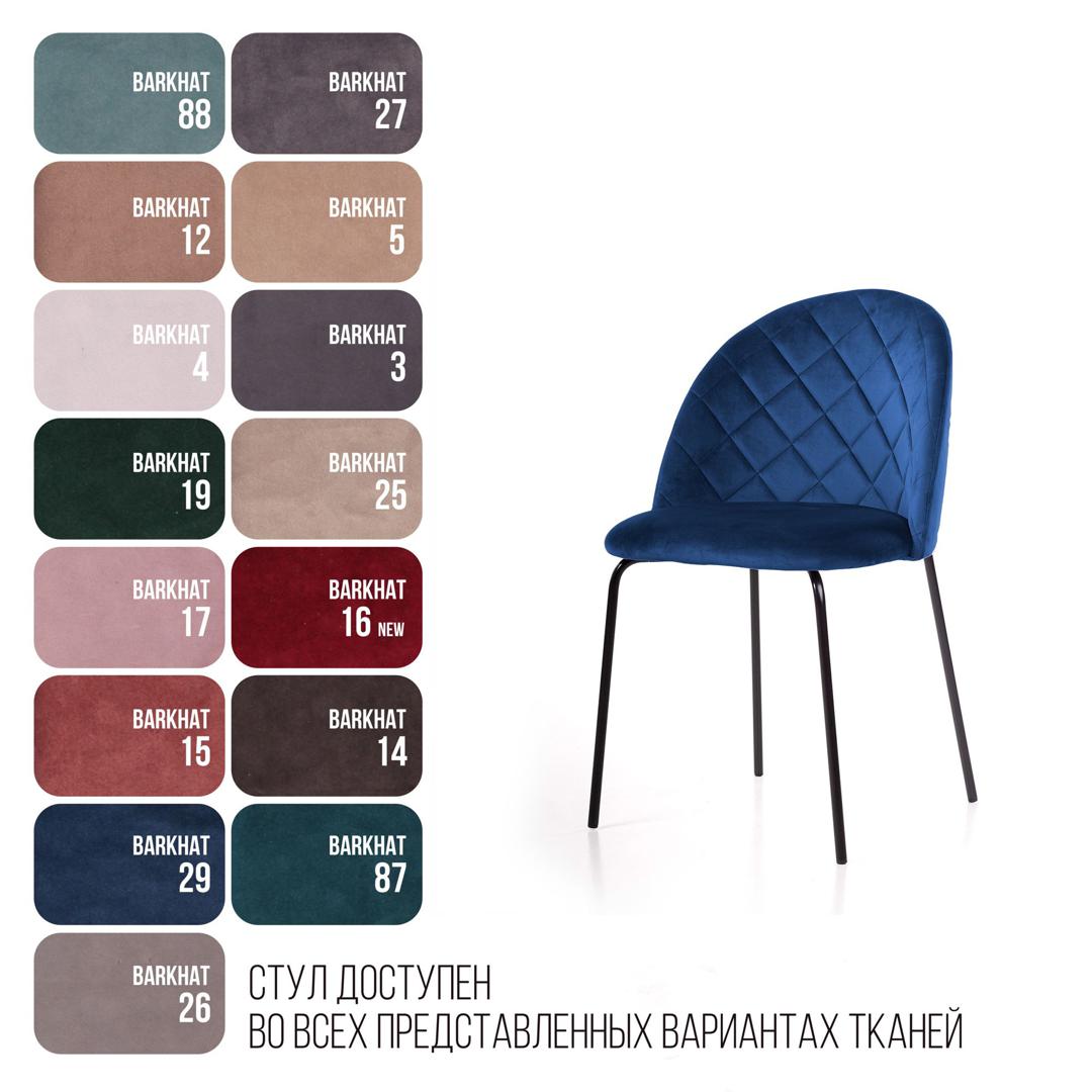 strong*Оттенок может выглядеть по-разному в зависимости от направления ворса./strong Стул «Норд» уютный и лаконичный. Стильная модель отличается простотой, гармоничностью и ясностью композиции. Модель обладает плавными линиями, полукруглой изогнутой спинкой и широким сиденьем, Главным декоративным элементом модели является ромбовидная отстрочка с лицевой части спинки, которая визуально придает мягкость модели. Изящные опоры придают стулу особый шарм и могут быть выполнены в матовом черном цвете. Удобство посадки Спинка изогнутой формы обеспечивает боковую поддержку спины. Каркас Надежный гнутоклееный каркас из шпона - основа безопасного и спокойного отдыха. Наполнитель В качестве наполнителя используется пенополиуретан высокой плотности. При ежедневной эксплуатации на протяжении длительного времени он сохранит первоначальную форму. Данное наполнение - это гарантия продолжительного срока службы изделия, что особенно важно для коммерческого использования. Опоры Металлические ножки окрашены в черный матовый цвет, расположены так, чтобы обеспечивать абсолютную устойчивость и защитить стул от раскачивания. На ножках предусмотрены специальные пластиковые накладки, которые защищают пол от царапин. Гарантия Тщательная проверка качества изделий осуществляется на всех этапах производства: от подбора материалов и комплектующих до проверки готового изделия перед отправкой. На все изделия Top concept мы предоставляем гарантию 18 месяцев.
