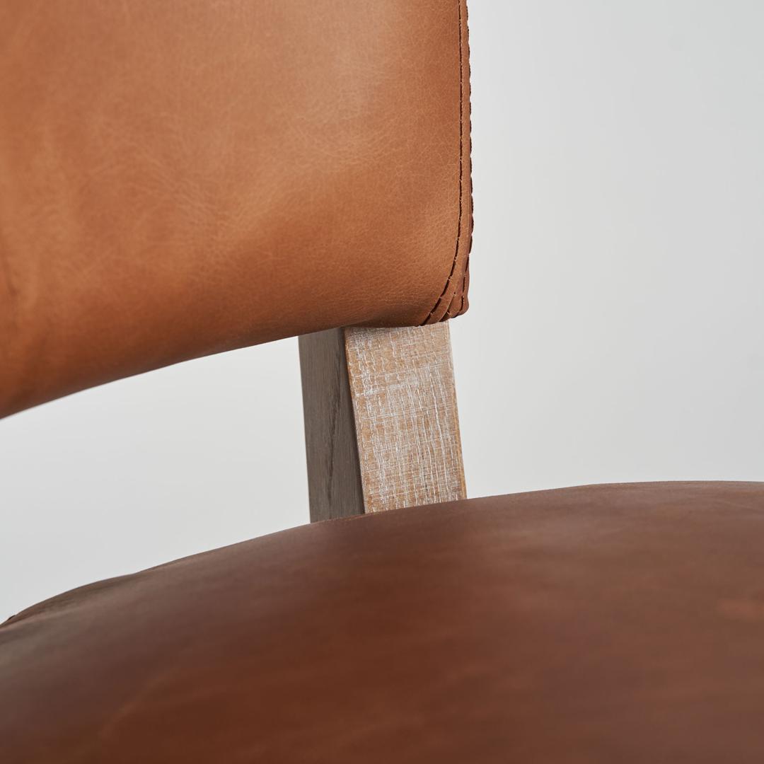 Стул TOLLA, коричневый цвет, винтажный стиль. Изготовлен из кожи в сочетании с деревом березы. Ширина: 52 см, Глубина: 62 см, Высота: 89 см.