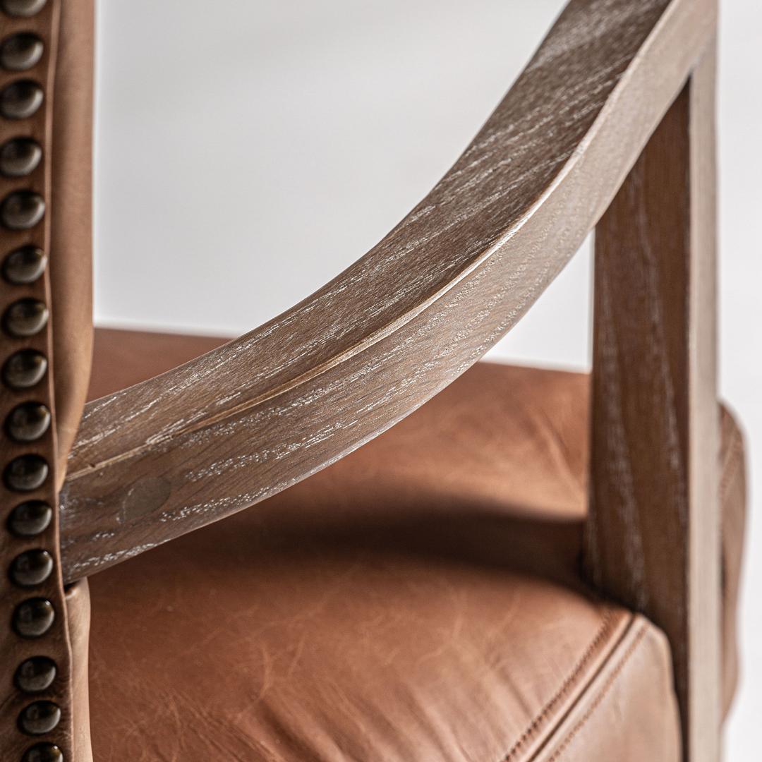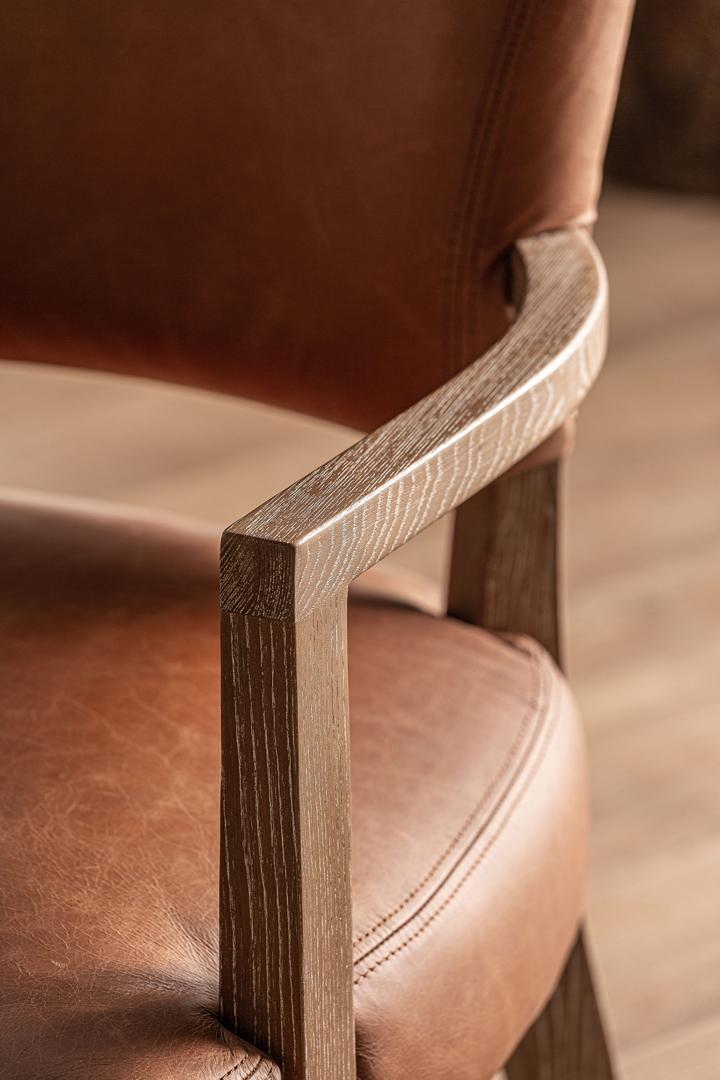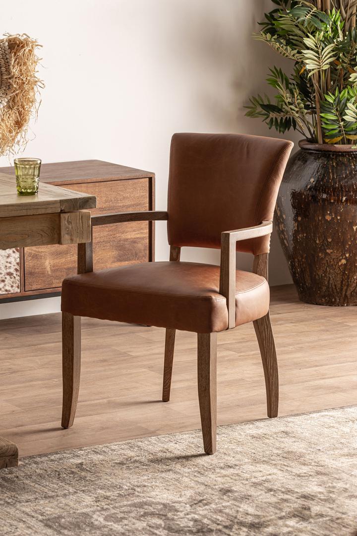 Стул TOLLA, коричневый цвет, винтажный стиль. Изготовлен из кожи в сочетании с деревом березы. Ширина: 57 см, Глубина: 66 см, Высота: 88 см