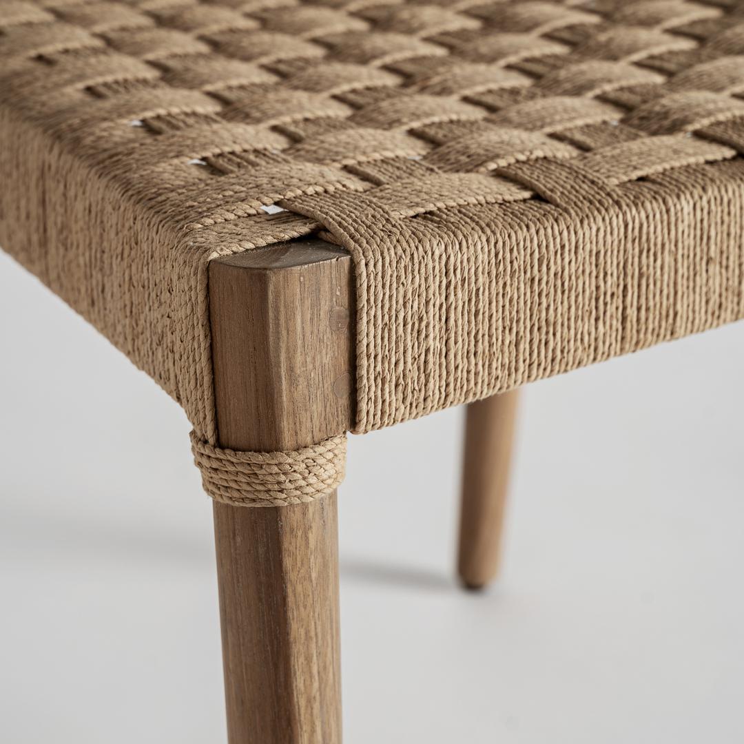 Стул Figeac в винтажном стиле, изготовленный из коричневого тикового дерева в сочетании с веревкой.