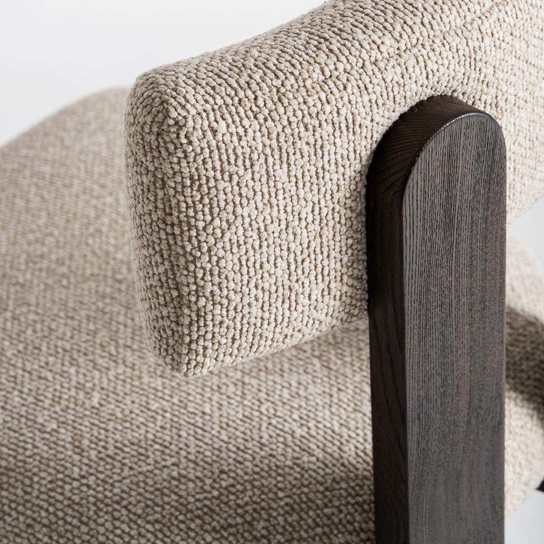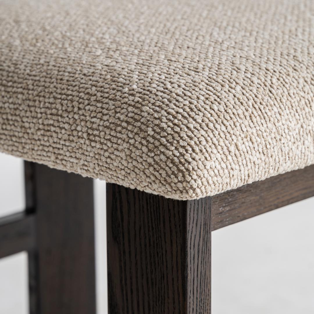 Стул изготовлен из бежевого полиэстера в сочетании с черным ясенем и поролоном. Ширина: 49 см, Глубина: 53 см, Высота: 79 см