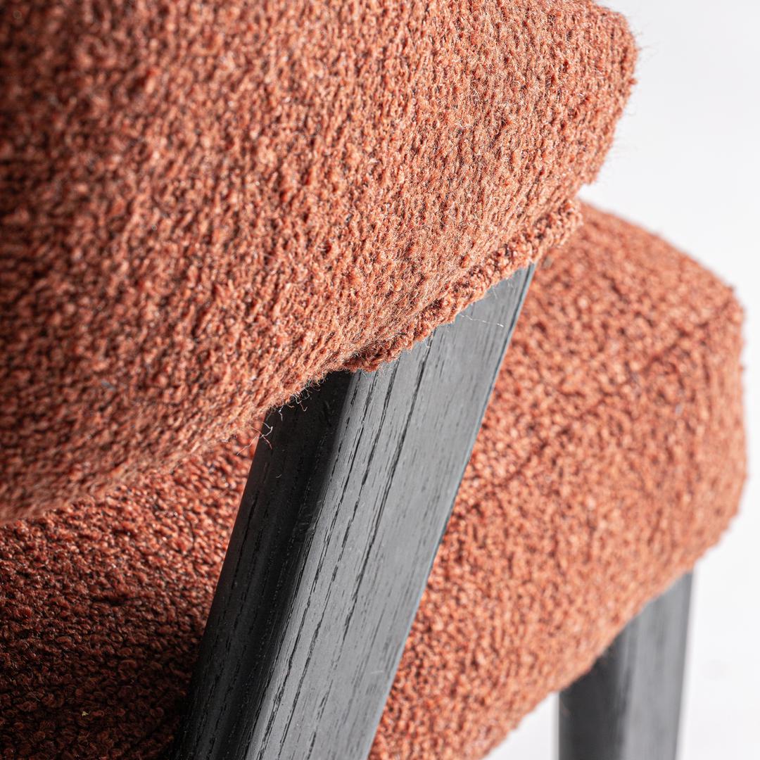 Стул изготовлен из красного полиэстера в сочетании с черным дубом и каучуковым деревом.