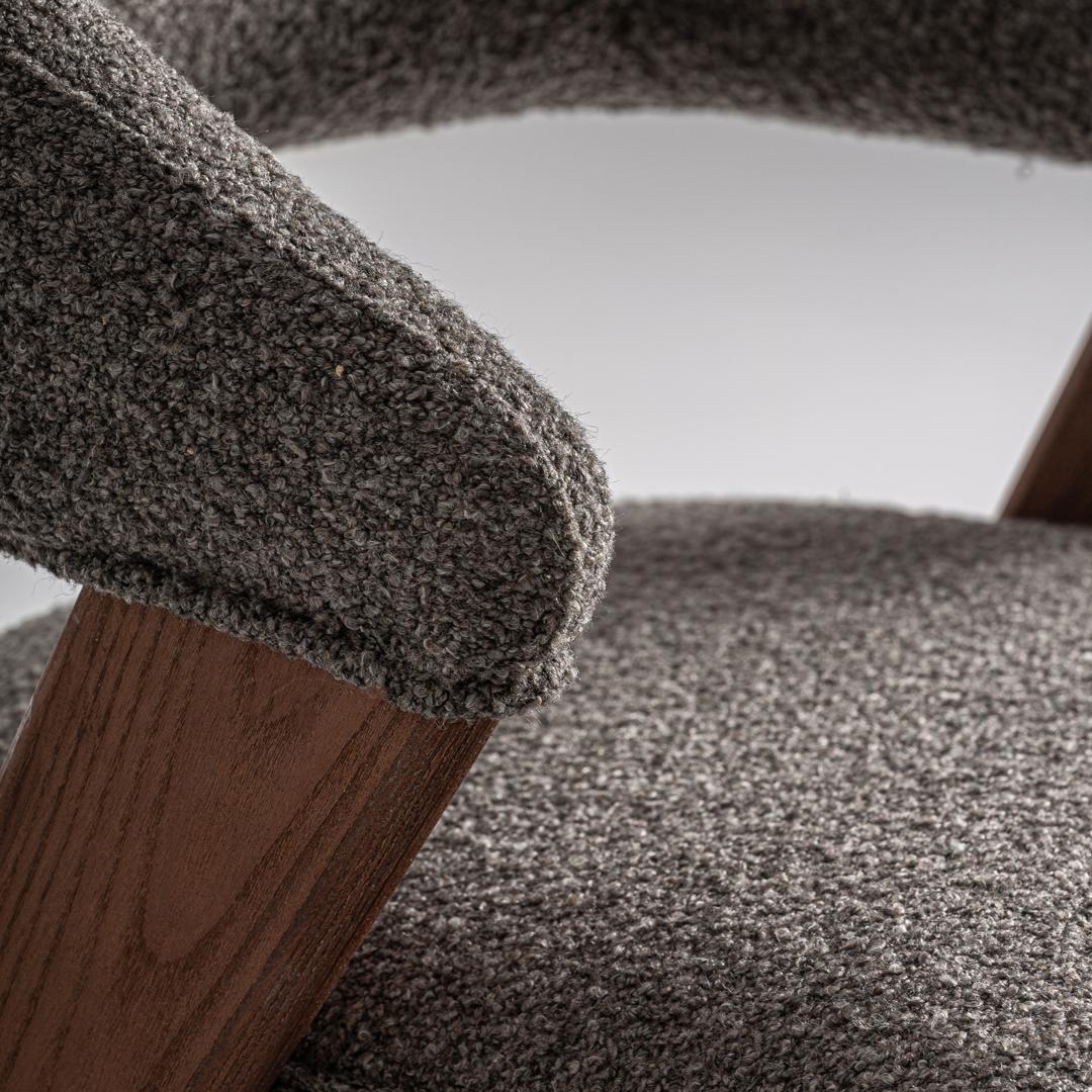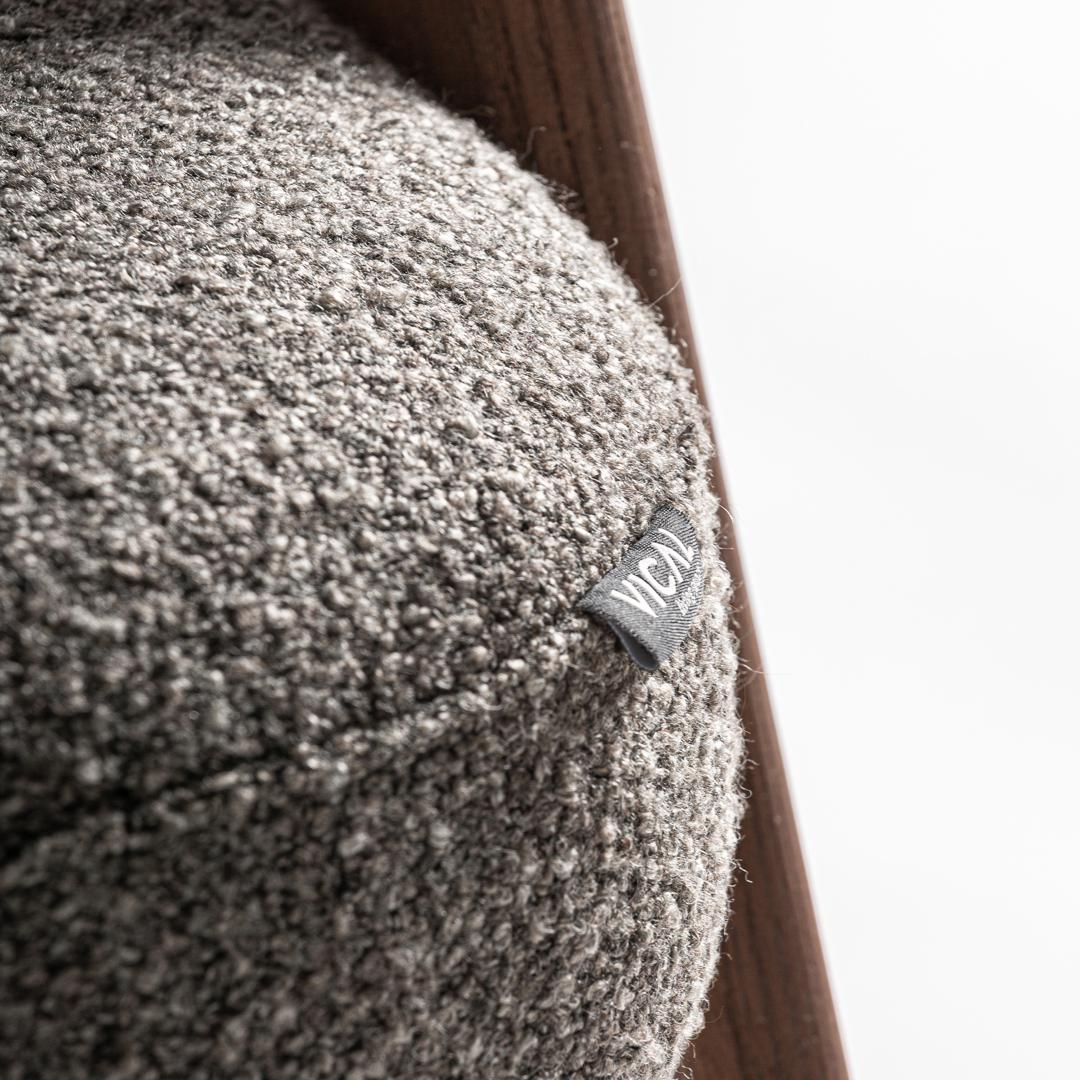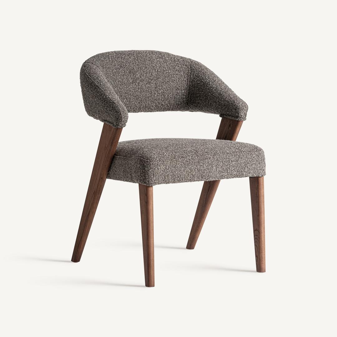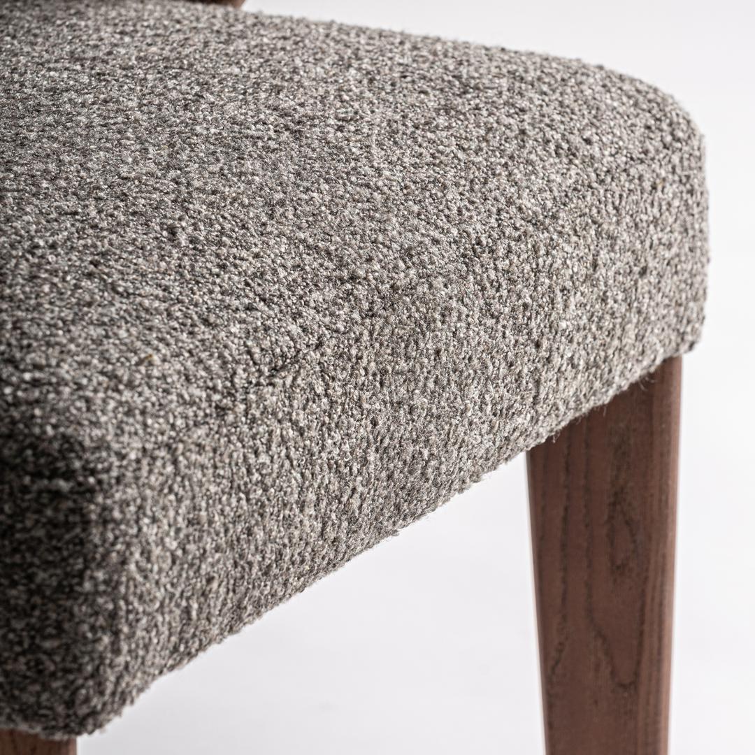 Кресло Veney от VICAL, обитое полиэстером серого меланжевого цвета, установлено на каркасе из коричневого дуба и каучукового дерева. Его дизайн с мягкими линиями и эргономичной спинкой обеспечивает комфортное и элегантное сидение. Ширина: 56 см, Глубина: 59 см, Высота: 81 см
