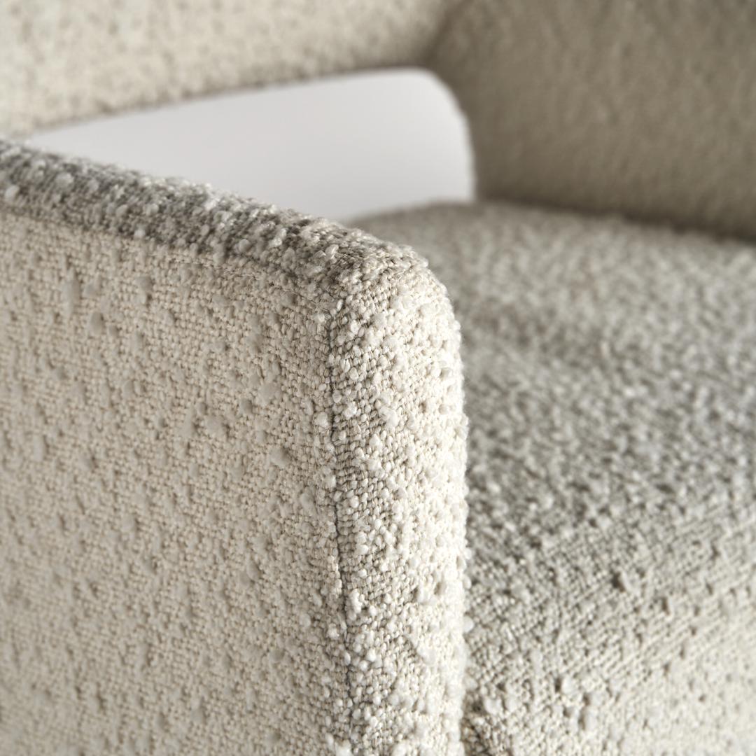 Кресло Alvra, обитое хлопковой букле кремового цвета, добавляет текстуру и мягкость. Его каркас из МДФ и пенополиуретана обеспечивает комфорт и стиль ар-деко. Фирменный стиль VICAL проявляется в каждой детали. Ширина: 58 см, Глубина: 56 см, Высота: 79 см