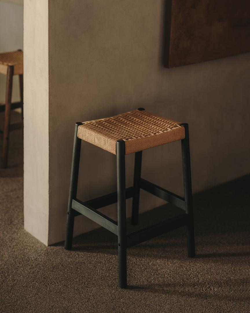 Табурет La Forma (ех Julia Grup) Yalia Табурет из дуба с черной отделкой и веревочным шнуром, высота 65 см арт. 190043