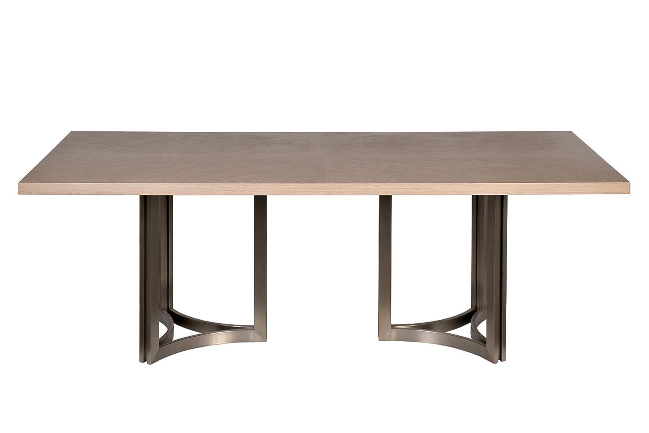 description-full - Прямоугольный обеденный стол воплощает последние тренды интерьерной моды – практичность, натуральность материалов, лаконичность дизайна. В конструкции гармонично сочетаются благородная фактура дерева и изысканный блеск нержавеющей стали. Вместо традиционных ножек столешница установлена на металлические опоры, за счет чего большой обеденный стол выглядит дорого и аристократично. Мебель отличают превосходное качество, премиальные материалы, ультрамодный дизайн. На нашем сайте можно купить обеденный стол вместе с креслами или стульями аналогичного дизайна.Просьба обратить внимание, что при перемещении стол следует держать только за основание, а не столешницу! Иначе столешница может потрескаться.