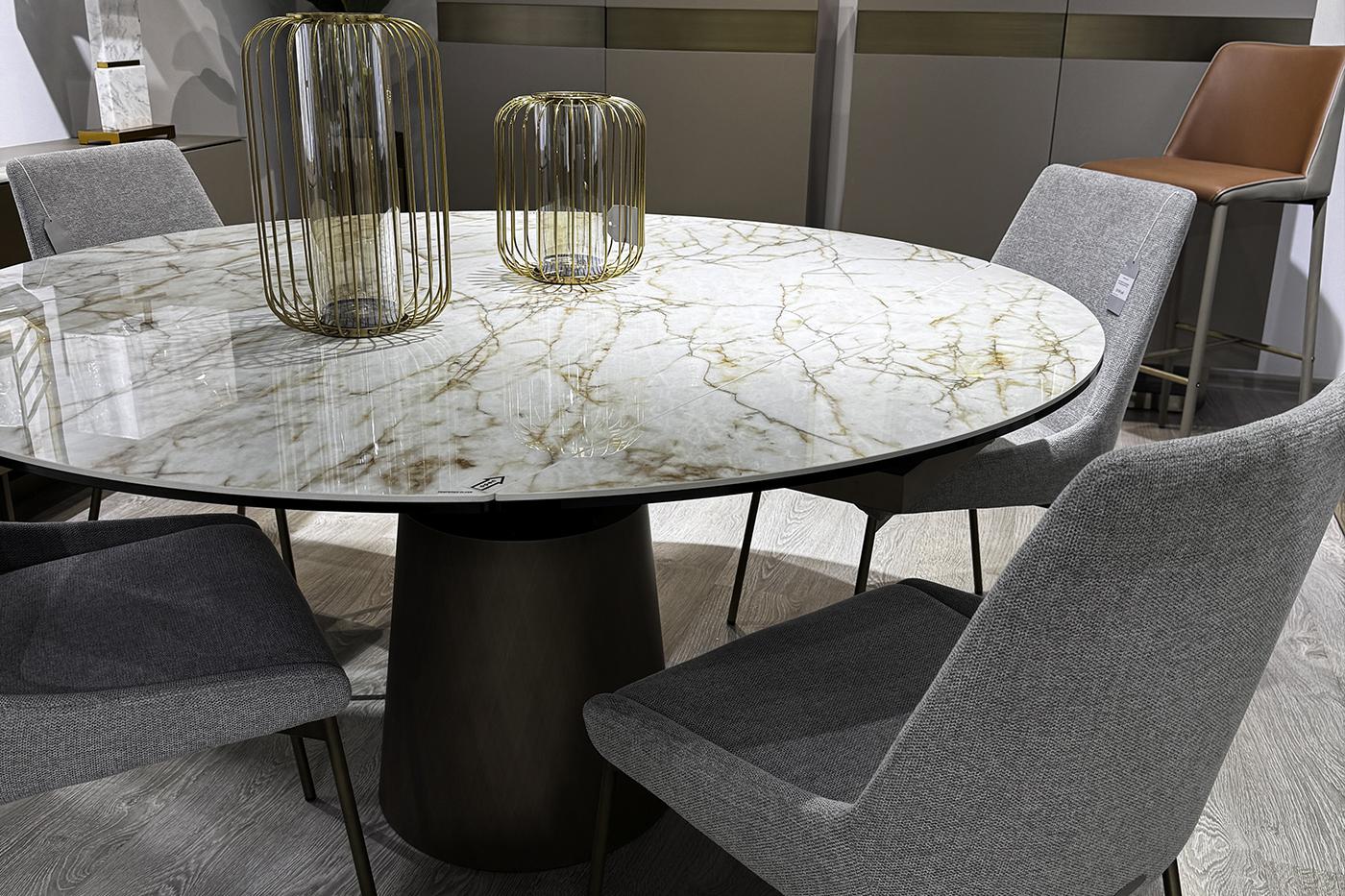 Представляем вашему вниманию этот элегантный круглый обеденный стол с керамической столешницей и раскладным механизмом. Сочетание изысканной керамики и массивной металлической ножки придает столу особый шарм. Этот стол станет настоящим украшением вашей ст...