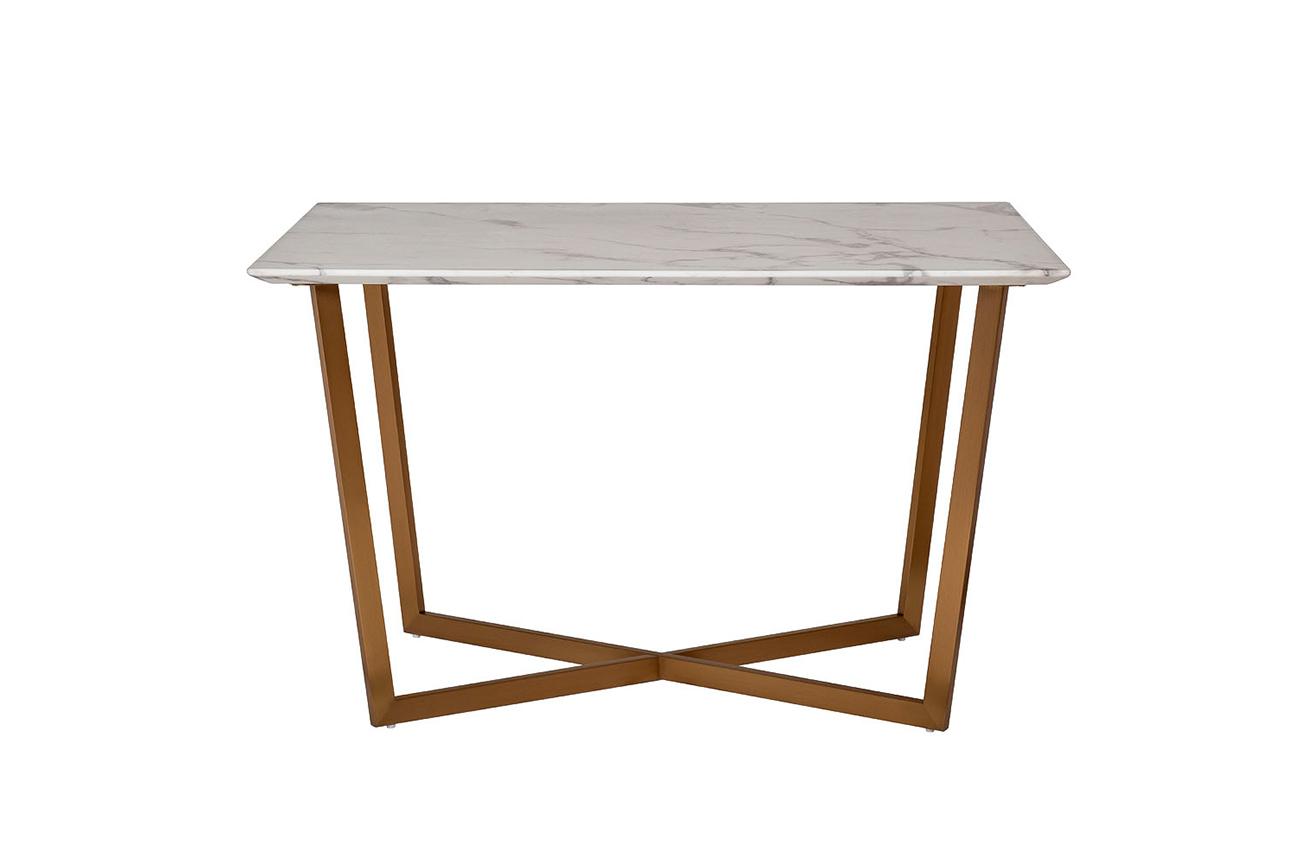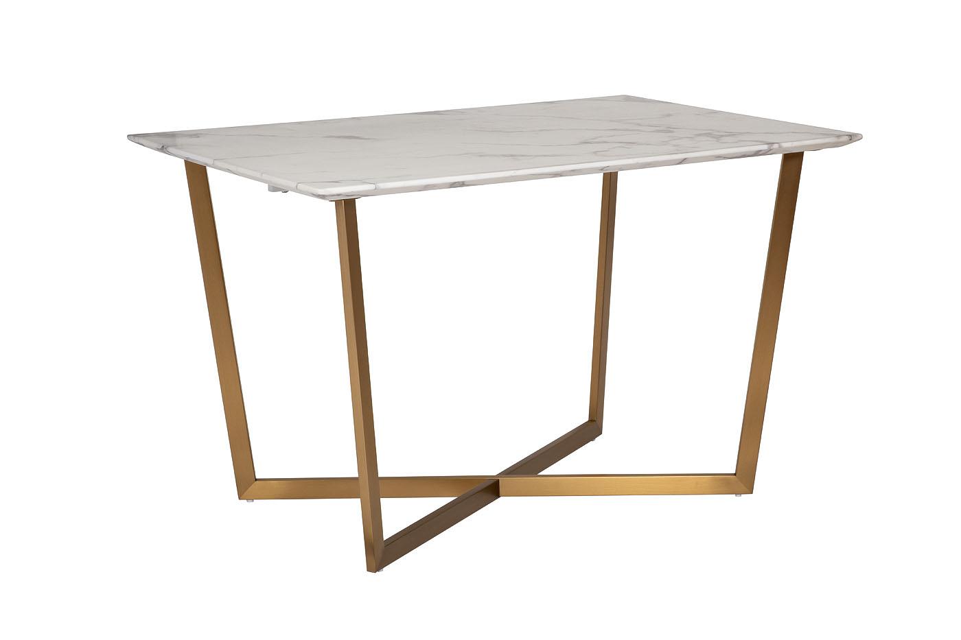 Обеденный стол в стиле ар-деко подчеркнет красоту вашей столовой или кухни. Необычная опора из нержавеющей стали в цвете матового золота заменяет привычные ножки и отличается особенной устойчивостью. Столешница выполнена из современного материала МДФ с по...