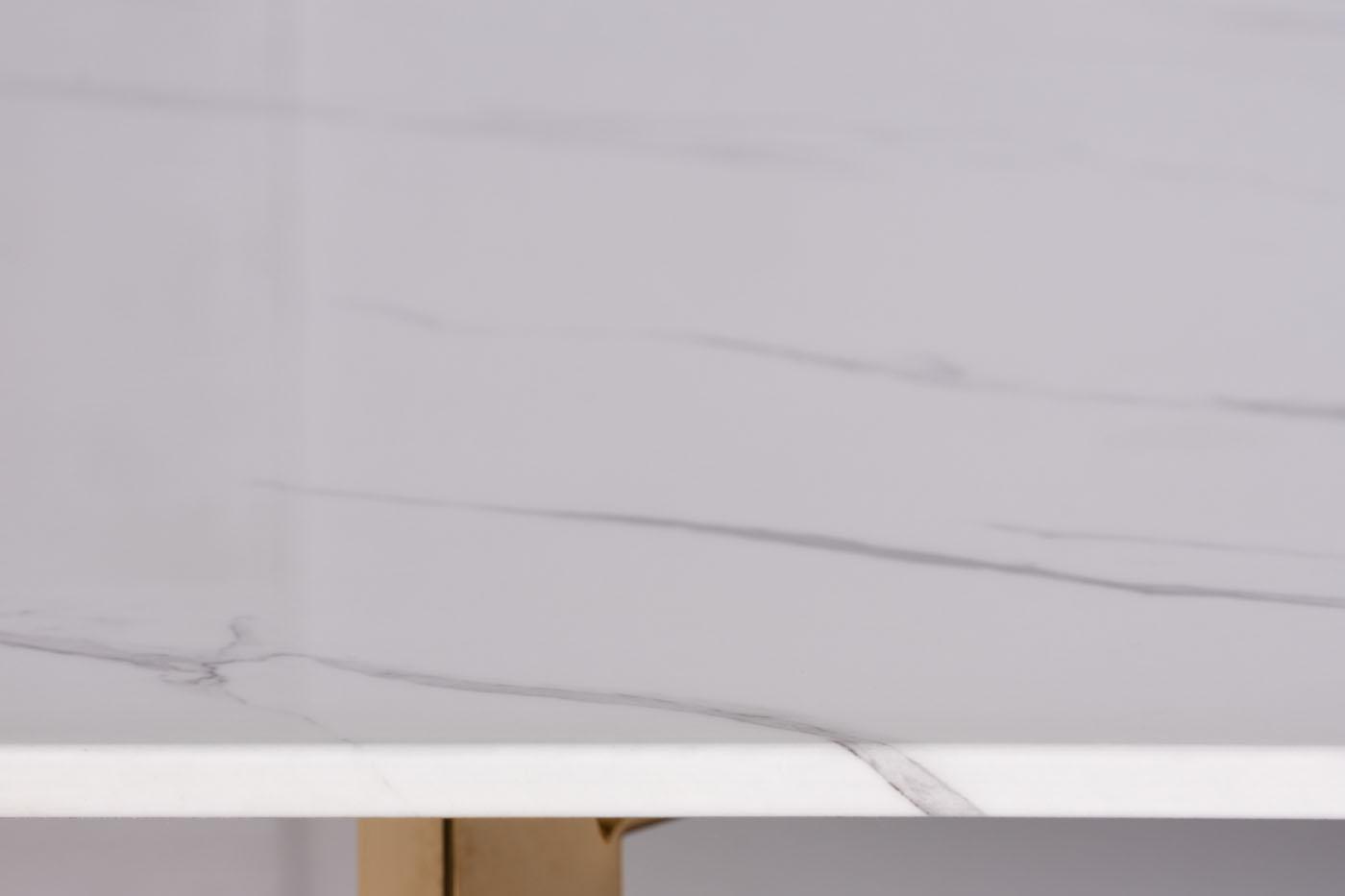description-full - Классические стильное решение для современной кухни или столовой зоны – установить белый обеденный стол. Благодаря своей лаконичности модель смотрится благородно. Этому способствует каждая ее деталь: столешница из мраморного стекла, металлические плоские ножки и плавные геометрические линии. Обеденный стол белого цвета красиво впишется в интерьеры в стилях авангард, фьюжн, неоклассика, модерн и ар-деко. Глянцевая поверхность и металлический блеск ножек придают особого стиля изделию. Купить обеденный стол можно в компании Garda Decor с доставкой. Узор мрамора достигается нанесением пленки с принтом на закаленное стекло, далее покрывается полимерным составом и полируется до глянцевой поверхности. Толщина столешницы - 10мм, она располагается на основании и держится за счет собственного веса. Цвет столешницы от партии к партии может незначительно отличаться (в пределах 10%).