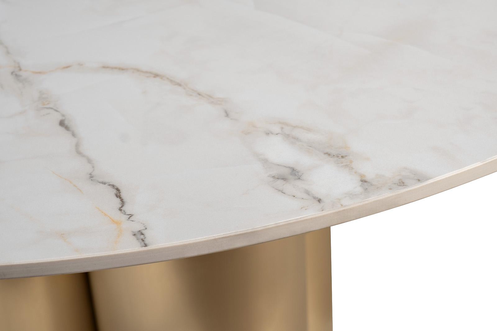 Мебель Garda Decor 76AR-63041 Стол обеденный керамогранит белый/мат.золото d130*76см арт. 76AR-63041