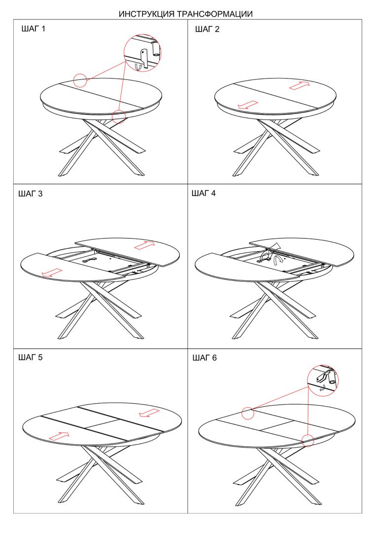 description-full - Столешница двухслойная: 5,5мм керамика на 6мм закалённом стекле, центральные расширители - из МДФ белого матового цвета. В сложенном виде диаметр столешницы 1195мм, в разобранном - овал 1695*1195мм. Каркас и ножки изготовлены из покрашенного металла.