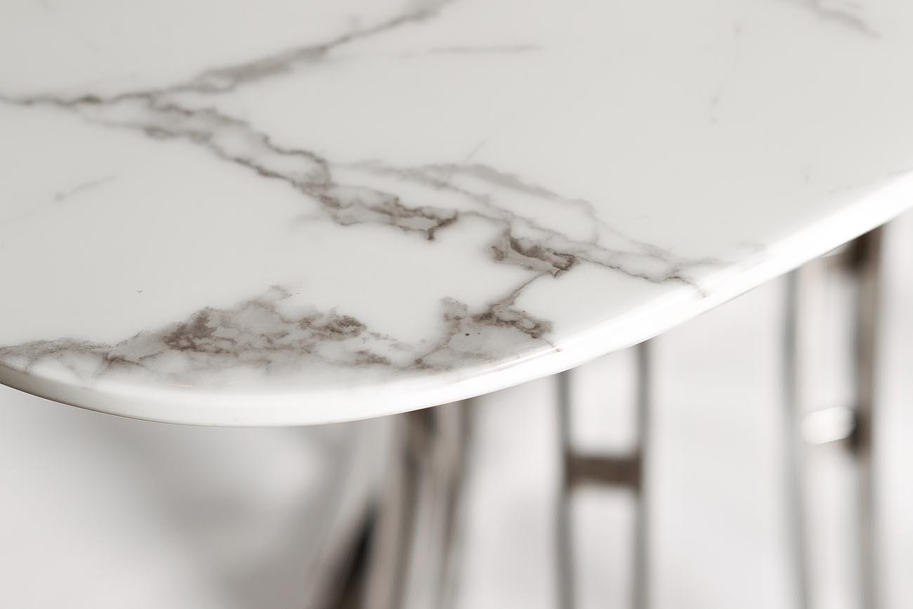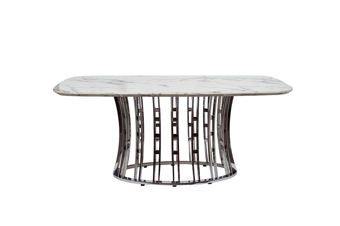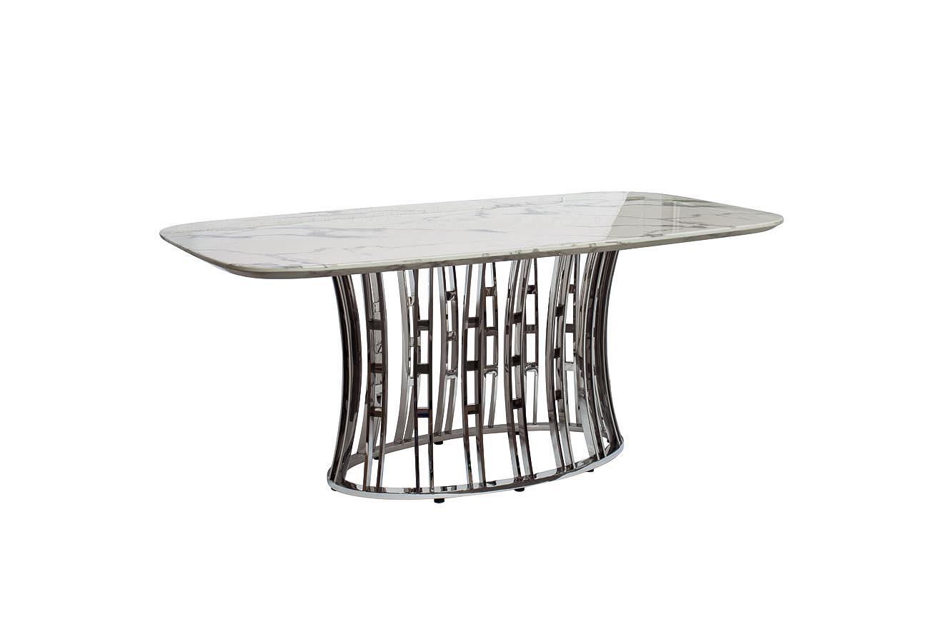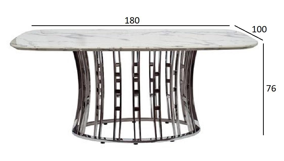 description-full - Обеденный стол Exclusive - прекрасное приобретение в стиле ар-деко для вашей столовой или гостиной. Сервированный хрусталем и фарфором, отражающий блеск свечей или красоту живых цветов он является воплощением Art de vivre - искусства жить, как говорят французы. Плавные линии, сочетание узора полированного камня с модной сталью располагают как к изысканной трапезе, так и к утонченной беседе. Столешница - МДФ с полимерным покрытием под мрамор. Толщина столешницы - 36мм.