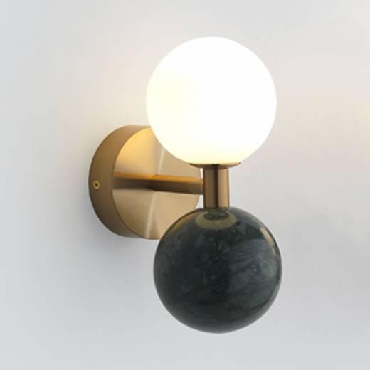 Настенный светильник состоит из плафона из стали черного или золотого цвета, опалового стекла и мраморной детали. Вы можете выбрать отделку мрамора между зеленым, белым и черным цветами.