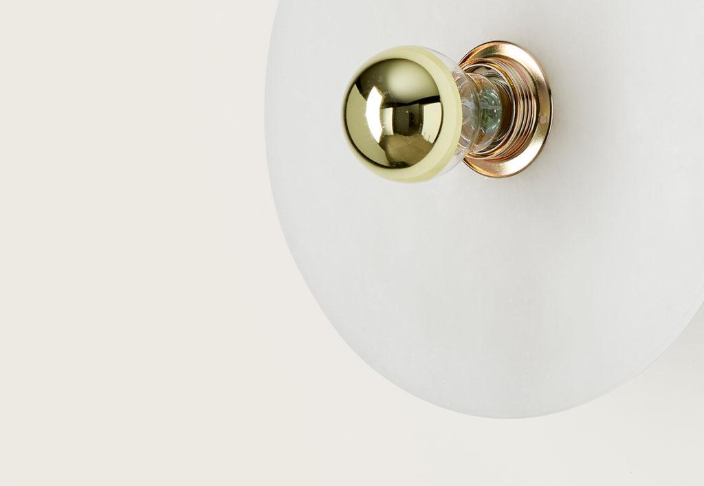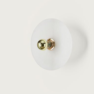 Настенный светильник с металлическим патроном из металла в хромированной, золотой, черной или белой матовой отделке и керамическим экраном в двух размерах. Вы можете добавить декоративную лампочку.
