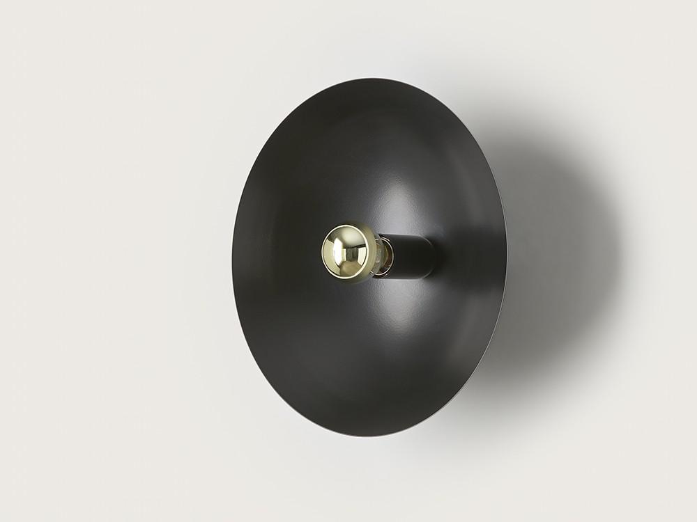 Настенный светильник минималистичного дизайна со стальным плафоном черного или матового золота двух размеров. Вы можете добавить декоративную лампочку.