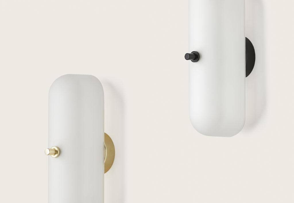 Настенный светильник Atil с элегантной металлической основой доступен в латунном или матовом черном цвете с абажуром из опалового стекла.
