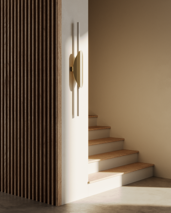 Настенный светильник, выполненный из акрила и металла в золотой или черной отделке.
