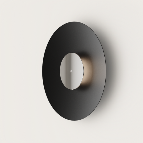 Настенный светильник, выполненный из акрила и металла в черной отделке. Внутренний плоский зеркальный диффузор.