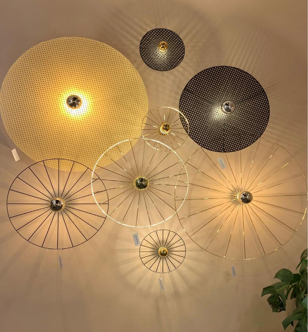 Настенный светильник Wheel органично сочетает в себе функции светильника и декоративного элемента: повесить на стену светящееся колесо — сложно придумать что-то оригинальнее. Остаётся лишь подобрать лампочку под стать — и в вашем распоряжении маленький шедевр декоративного искусства. Производитель предоставляет заказчику большую свободу. Вы можете купить бра Wheel в трёх размерах: 30, 60 или 90 сантиметров в диаметре. Из расцветок предложены все наиболее популярные: чёрный, белый, медь, золото, хром. Более того, при желании это металлическое бра можно превратить в торшер или подвесной светильник — достаточно лишь заказать дополнительно специальные аксессуары от фабрики.