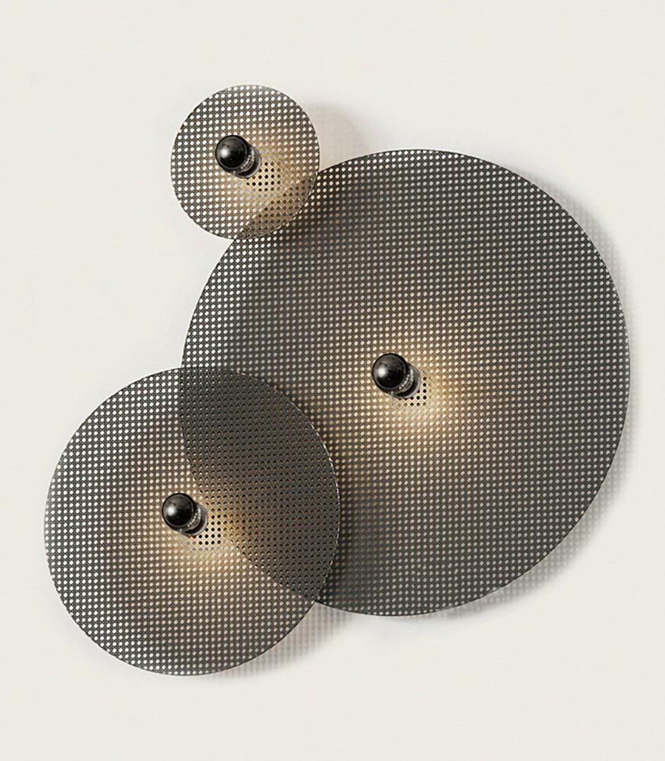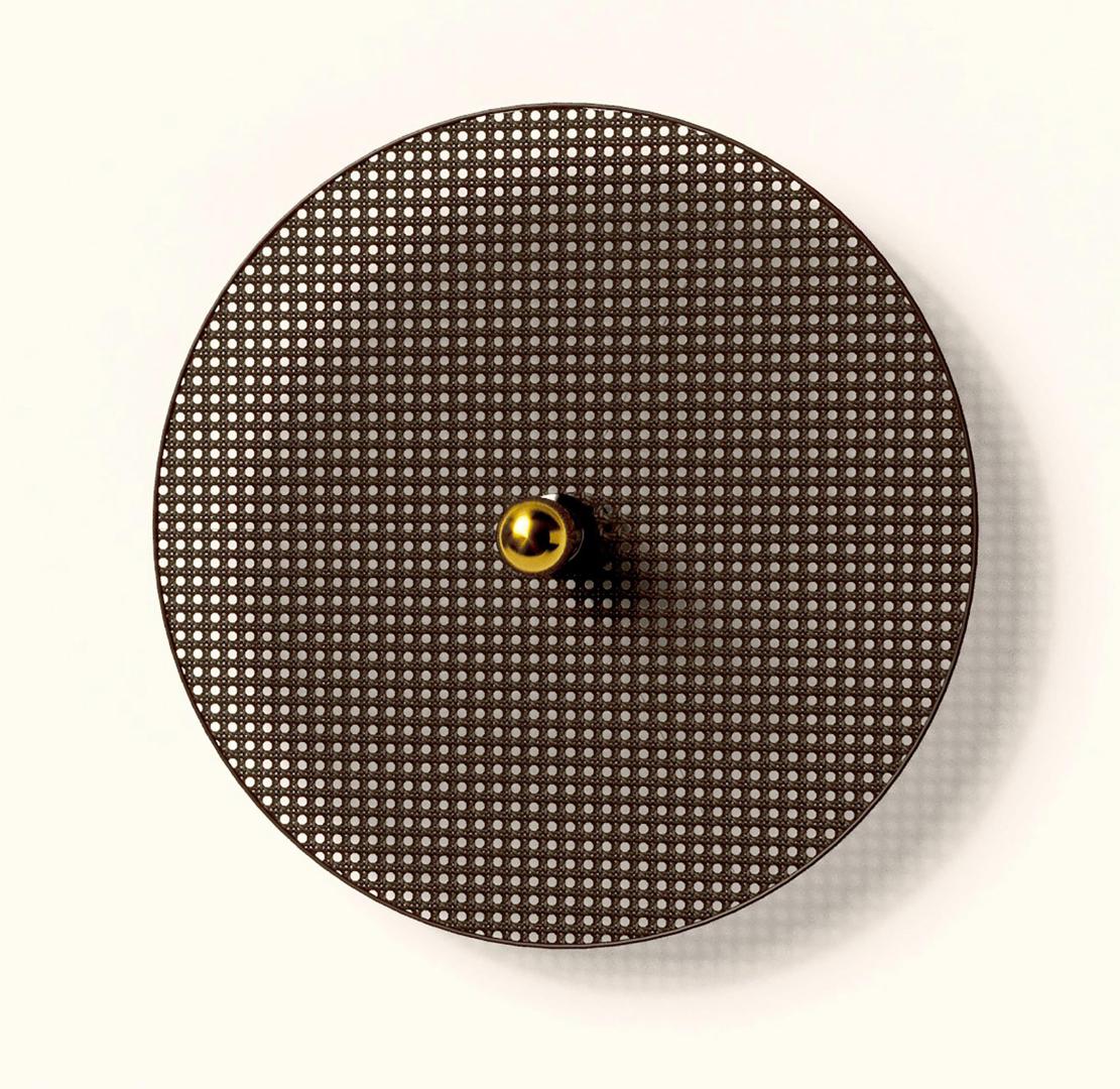 Настенное бра, выполненное из металла и ротанга в современном стиле. Состоит из металлического фиттинга размером 15 см черного цвета и рассеивающего диска из ротанга 90 см в черном цвете.