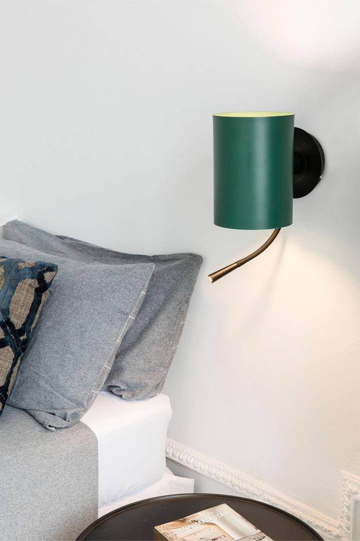 Настенный светильник с цилиндрическим экраном в зеленом цвете, разработанный Faro Lab. Уникальный дизайн, который придаст современный вид любому пространству. Благодаря светодиодному считывателю он дополняет функцию окружающего освещения функцией чтения. Структура черного цвета.