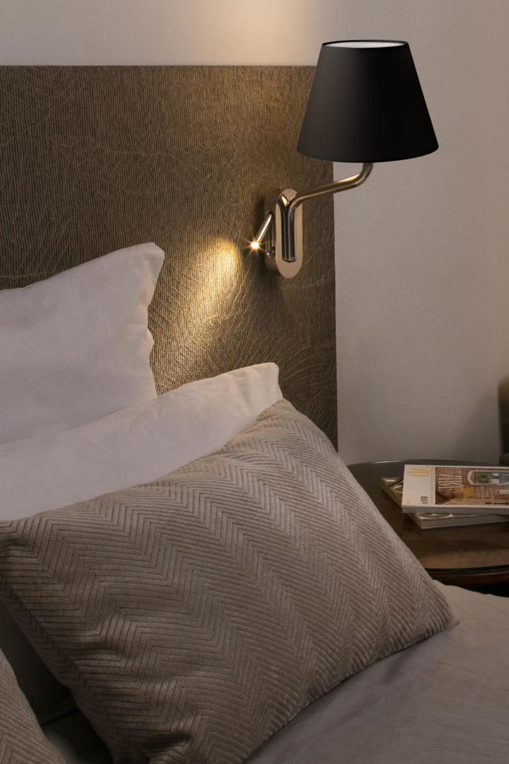 ETERNA - это коллекция ламп для внутреннего освещения, разработанная Lucid. Этот настенный светильник с считывателем справа и черным экраном выполнен в стиле минимализма. ETERNA - это дизайнерский набор, предназначенный для освещения отелей и контрактных помещений.