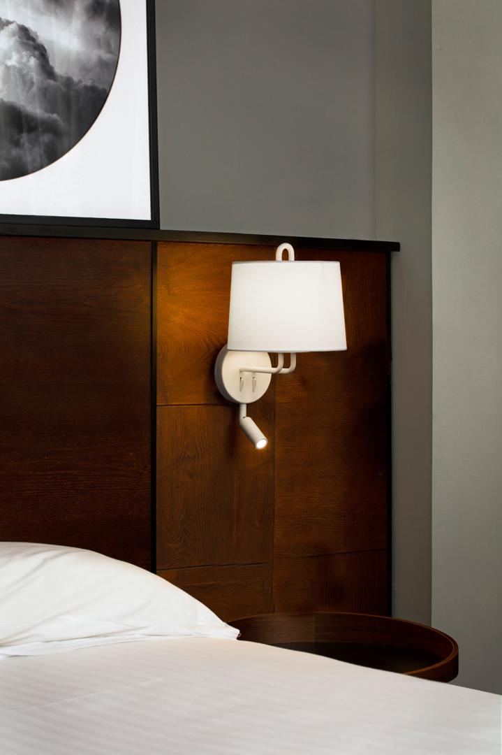 Настенный светильник с белым светодиодным считывателем и белым тканевым экраном. MONTREAL - это коллекция дизайнерских светильников от Nahtrang. Благодаря небольшому крючку в верхней части его конструкций, он обновляет классическую серию как для дома, так и для отелей и предприятий. Этот светильник идеален для освещения прихожей или в качестве точечного освещения в углу.