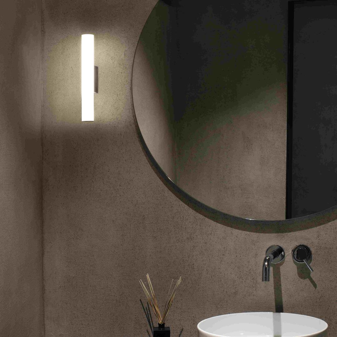 ВОЛГА - черный настенный светильник со светодиодной технологией из алюминия. Благодаря IP44 он идеально подходит для освещения ванных комнат. Версия 5W.