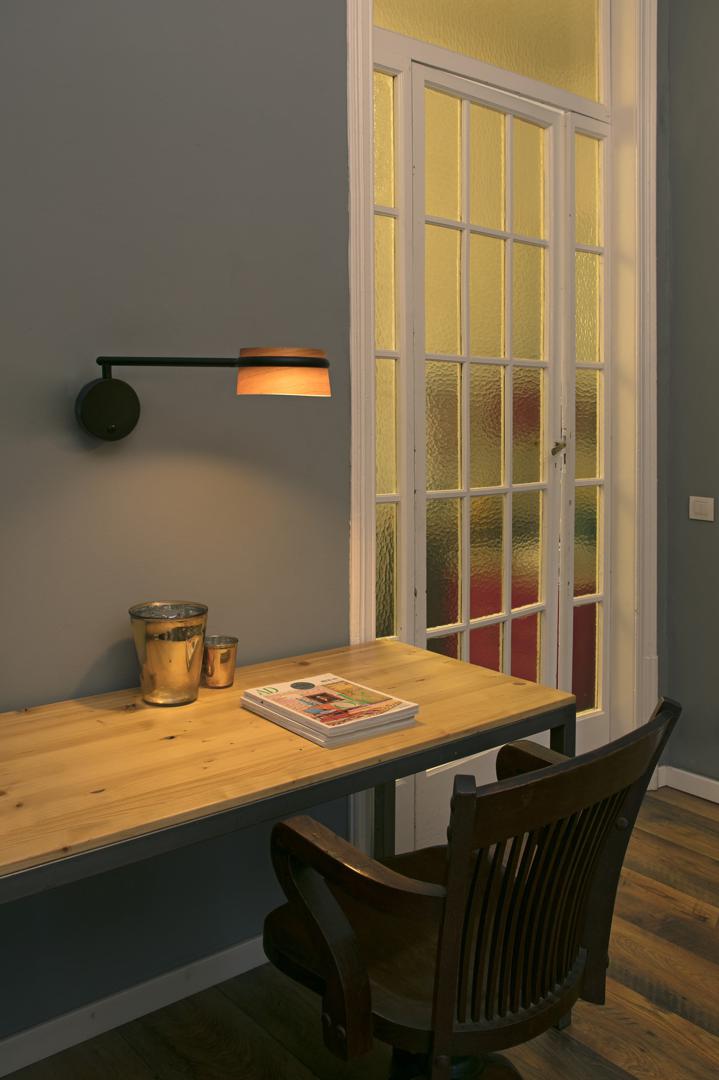 LOOP LED - это дизайнерский набор, созданный Estudi Ribaudí. Классический набор, но с современным и теплым оттенком благодаря деревянному экрану. Металлическая рама с круглым основанием и рукой, которая обнимает экран. Настенный светильник с шарнирным рычагом позволяет перемещать точку света и адаптироваться к различным потребностям. Источник света затемняемый .