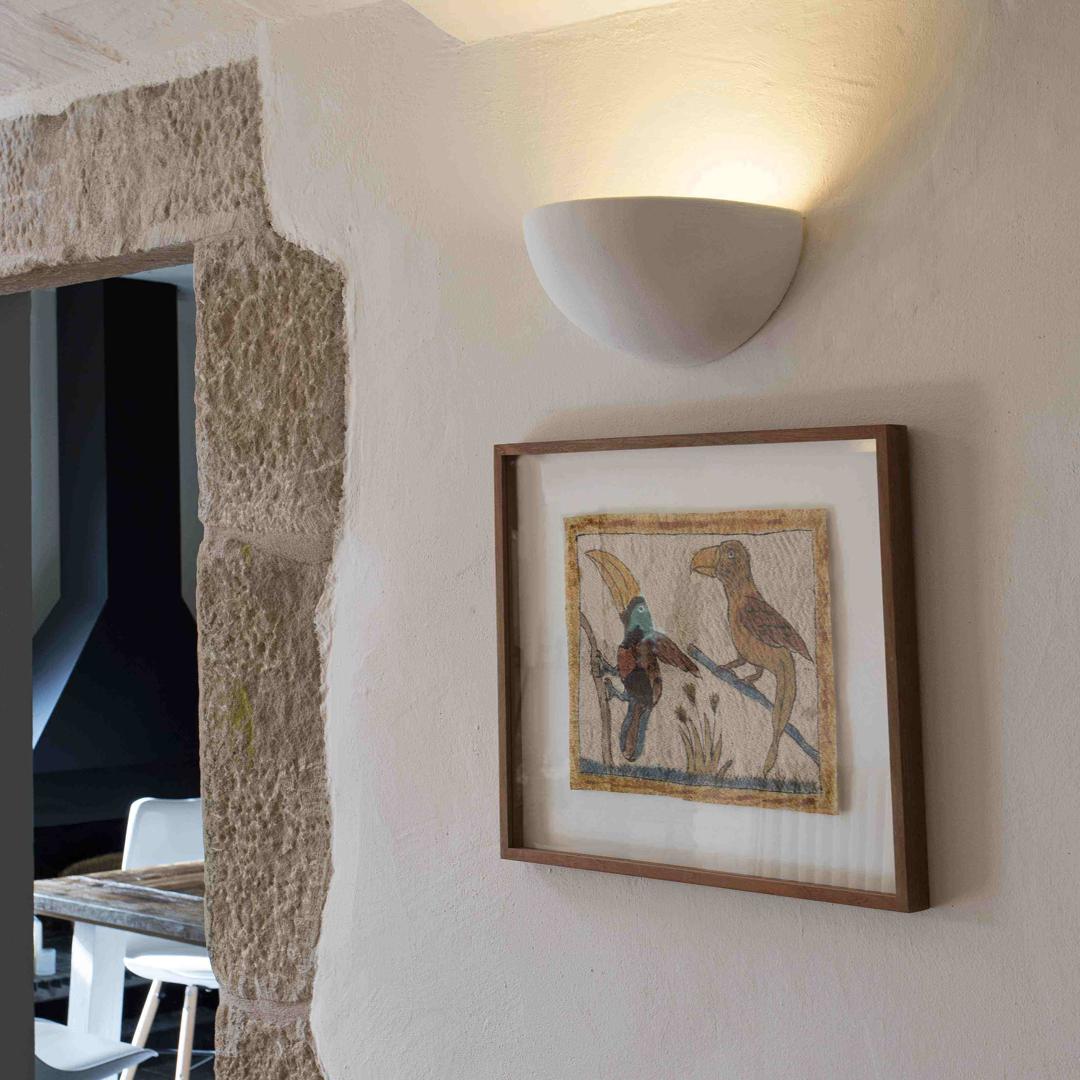 "SNOW - это настенный светильник из гипса, предназначенный для освещения вашего дома. Совместимость со светодиодной технологией. Этот настенный светильник с закругленными краями добавляет в комнату тепла.