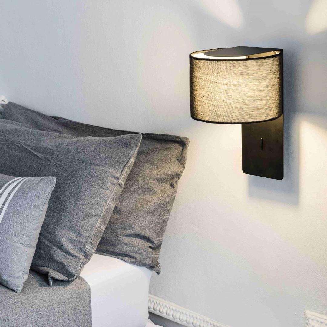 Коллекция комнатных настенных светильников. Nutcreatives создала FOLD, серию современного дизайна, включающую прямоугольную структуру и оттенок ткани. Структура имеет кусок в верхней части, который выступает в направлении диффузора. Этот черный настенный светильник имеет переключатель, встроенный в основание, чтобы облегчить его использование.