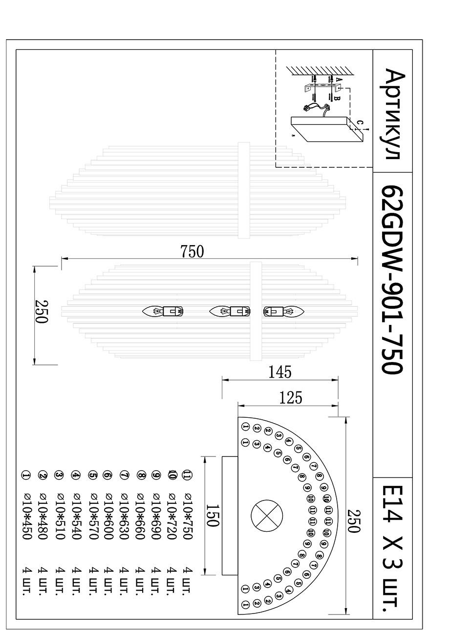 Бра Garda Decor 62GDW-901-750 Бра CLEO 25*75см арт. 62GDW-901-750