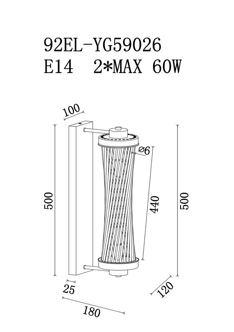Бра Garda Decor 92EL-YG59026 Бра латунь, стекло прозр. 12*18*h.50см арт. 92EL-YG59026