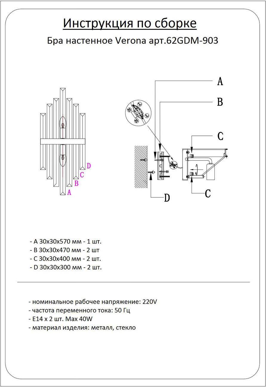 Бра Garda Decor 62GDM-903 Бра VERONA золото 22*50см арт. 62GDM-903