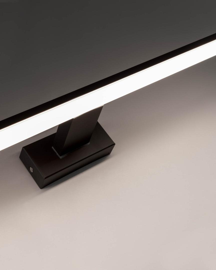 Настенный светильник Vissia от фабрики La Forma (ex Julia Grup) – идеальный минимализм для небольших пространств. В основе дизайна настенного светильника Vissia прямые и тонкие линии. Они идеально подойдут для каждой вашей комнаты современной городской квартиры. Светильник неприхотлив к влажности и температурному режиму, поэтому сможет работать даже в ванной. Вы точно найдете применение для Vissia! Настенный светильник выполнен из прочного пластика и металла. Металлическое основание окрашено в черный цвет матовой порошковой краской, которая защищает его от коррозии. Основание прямоугольной формы, размером 11х5 см. Через металлическую рукоятку к пластиковой крышке подведен электрический кабель. Он питает встроенную светодиодную лампу, имеющую характеристики: мощность – 16 Вт, цветовая температура – теплая, номинальный срок службы – 20000 часов, энергетический класс – A--A++, энергоэффективность – A++. Кабель соединяется с комнатной проводкой. Штекер не предусмотрен. Размеры светильника: высота – 5 см, ширина – 60 или 30 см (зависит от выбранной модели), глубина – 13 см Вес изделия – 0,35 или кг. Сборка не требуется.