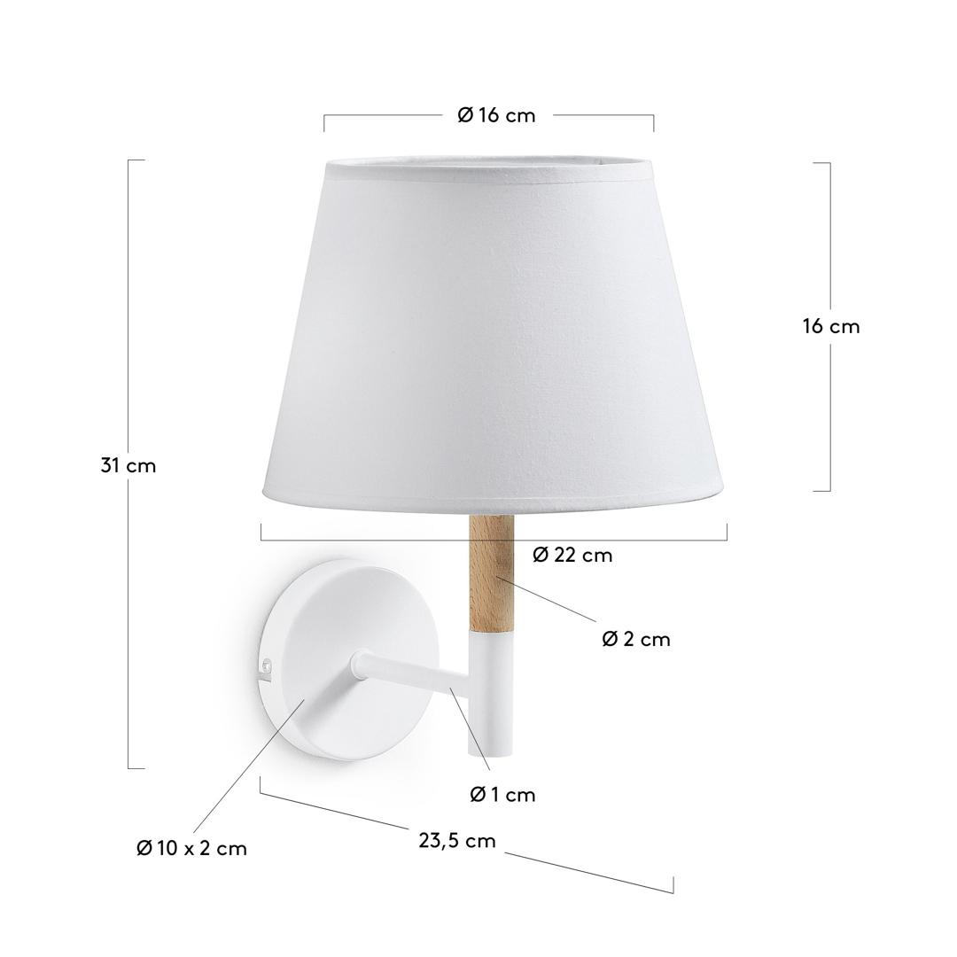 Бра Moskov от фабрики La Forma (ex Julia Grup) – стильный хлопчатобумажный конус для вашей стены. Бра Moskov – это светильник, в котором четко выделен каждый элемент. Его геометрическая концепция здесь образована из натуральных материалов. В основе железо, хлопок, дерево. Все это тренды, которые создают в городском интерьере современный дизайн, уют и ваш индивидуальный стиль. Бра Moskov для вас! Бра состоит из деревянного рычага с металлическим наконечником, круглого основания и конусовидного тканевого абажура. Рычаг изготовлен из натурального бука, что придает каждому изделию свою уникальность.Толщина рычага – 2 см. Все металлические элементы окрашены в цвет матовой порошковой краской. Основание имеет ширину 10 см и толщину 2 см. Из него по трубчатой рукоятке шириной в 1 см проходит кабель, который через рычаг достигает лампочки. Для этого светильника требуется энергосберегающая лампа с такими характеристиками: цоколь – Е14, мощность – 40 Вт, класс энергопотребления – Е-А++, максимальная энергоэффективность – A++. Абажур сделан из 100% хлопка белого цвета и проволочного металлического каркаса (внутри). Размеры бра: высота – 31 см, ширина – 22 см, глубина – 23,5 см Вес изделия – 0,4 кг. Потребуется небольшая сборка.