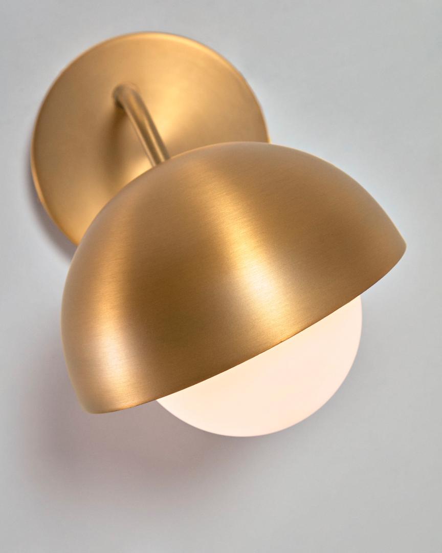 Бра Lonela от фабрики La Forma (ex Julia Grup) – латунное дополнение к вашей стене. Бра Lonela – это стильный городской минимализм с ретро-акцентом. Светильник добавит вашей обстановке блеск, свет, идеальную форму. Латунь эффектно подчеркнет свет из белого матового абажура. Это будет впечатляющий свет – ваш акцент и ваша индивидуальность. Бра имеет составную конструкцию, состоящую из металлического основания и стеклянного абажура. Основание покрыто латунной краской по методу порошкового покрытия, благодаря чему поверхность идеально гладкая. Абажур имеет форму сферы. Материал изготовления – стекло с белым матовым покрытием. Место крепежа светильника к стене закрывается круглым основанием с диаметром 12 см. Провод от абажура к стене проходит через стержень, благодаря чему он скрыт от глаз и не нарушает эстетики изделия. Для светильника потребуется лампа мощностью 18 Вт, классом энергопотребления Е-А++, максимальной энергоэффективностью A++. Размеры: ширина – 15 см, высота – 12 см, глубина – 23 см Вес изделия – 0,52 кг. Сборка не требуется.