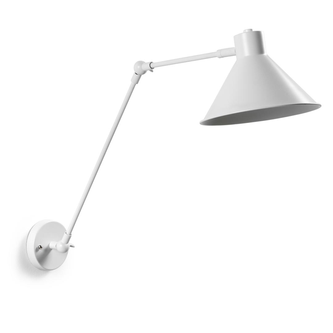 Настенный светильник Odine от фабрики La Forma (ex Julia Grup) – промышленный минимализм и практичный металл. Настенный светильник Odine совершенно однозначно подойдет для вашей городской квартиры, в которой интерьер соответствует современному стилю и требует стильных предметов интерьера. Здесь трендовая матовая фактура идеально сочетается с предложенной геометрией – лампа выглядит модно, минималистично, функционально. Выбирайте для своего стиля Odine! Лампа полностью металлическая, с матовым белым или черным покрытием (зависит от выбранной модели). Конусный абажур с широким козырьком соединяется с регулируемой трубчатой рукояткой. Такая конструкция обеспечивает широкий поток света под нужным углом. Ширина абажура по нижнему краю – 20,5 см, высота – 14,5 см. Для светильника требуется энергосберегающая лампа с характеристиками: цоколь – Е14, мощность – 40 Вт, класс энергопотребления – Е-А++, максимальная энергоэффективность – A++. Она в комплект не входит. Кабель наружу не выведен, соединяется с комнатной проводкой. Место крепежа закрывает круглая коробка-основание с диаметром 11 см. Размеры: ширина – 20 см, высота – 57 см, глубина – 35 см. Вес – 0,8 кг. Сборка не требуется. В коллекции Odine также представлен потолочный светильник с тремя аналогичными абажурами.