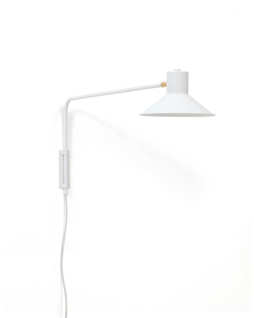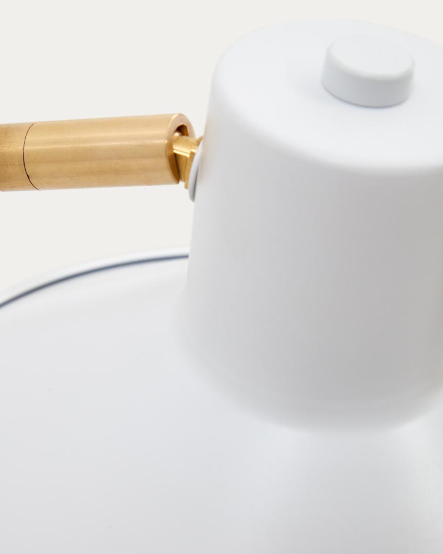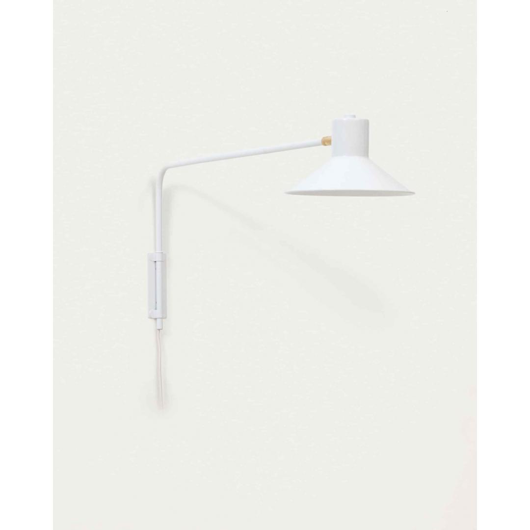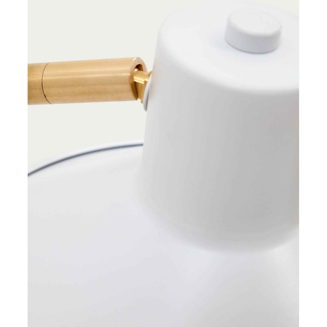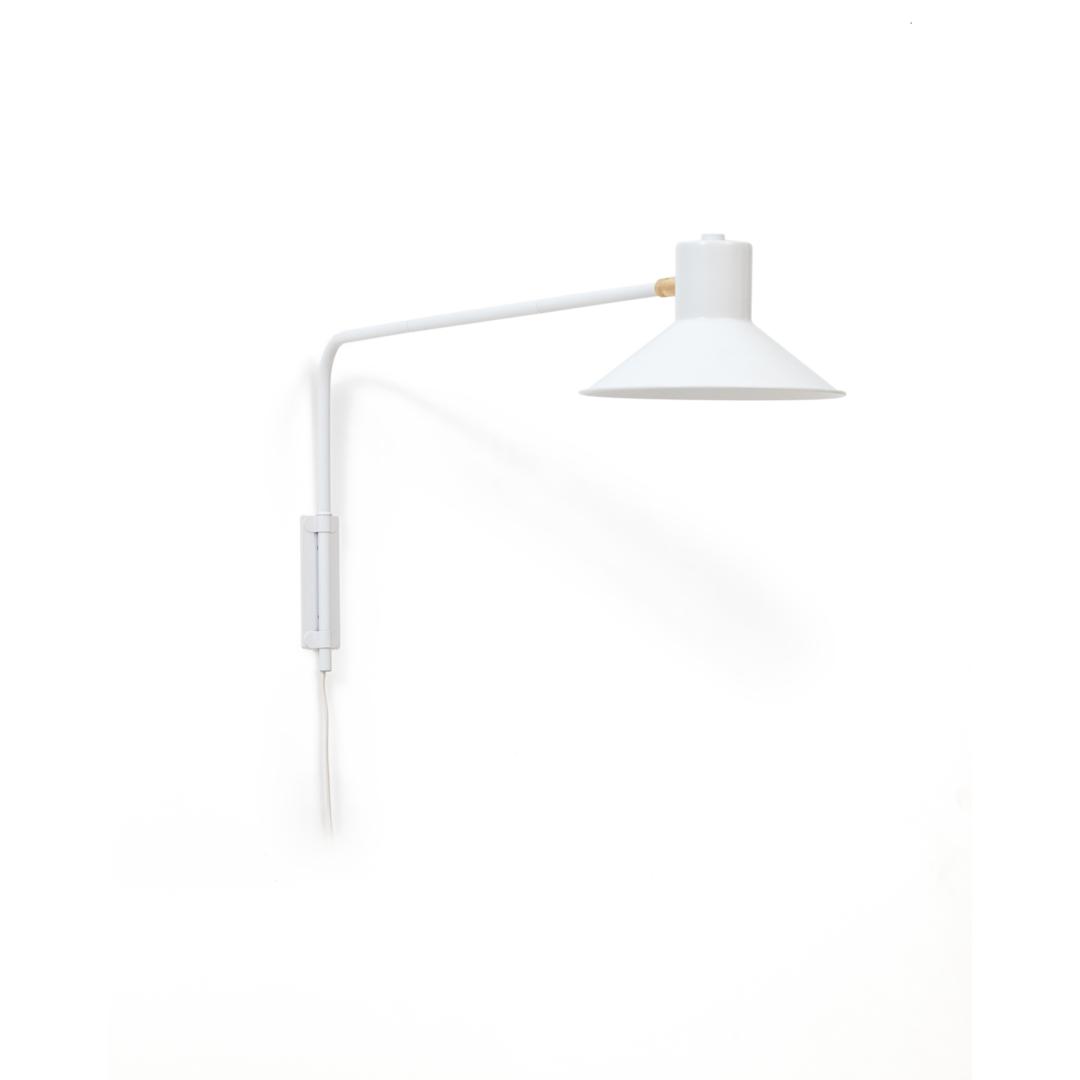 Шарнирный настенный светильник с кронштейном, стальным экраном, окрашенным в белый цвет, и небольшой латунной деталью. Идеальный элемент дизайна для освещения всех типов пространств и вписывания в любую обстановку.