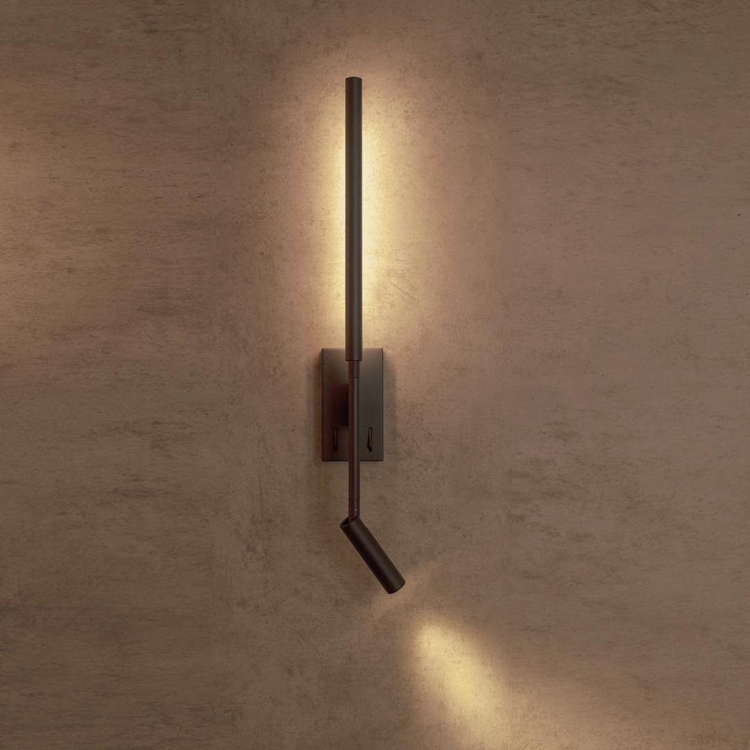 Настенный светильник Torch отлично подойдет для установки в помещении, оформленном в стиле хай-тек. Осветительный элемент встроен в конструкцию и не требует приобретения дополнительных лампочек. Светильник выполнен из металла и алюминия. Основным цветом товара является черный.
