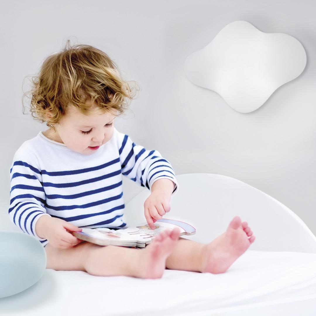 Светильник Eos, с плафоном из поликарбоната воссоздает формы облаков в белом цвете. Оборудован лампой с IP44, который облегчает его установку как в закрытом помещении, так и снаружи.