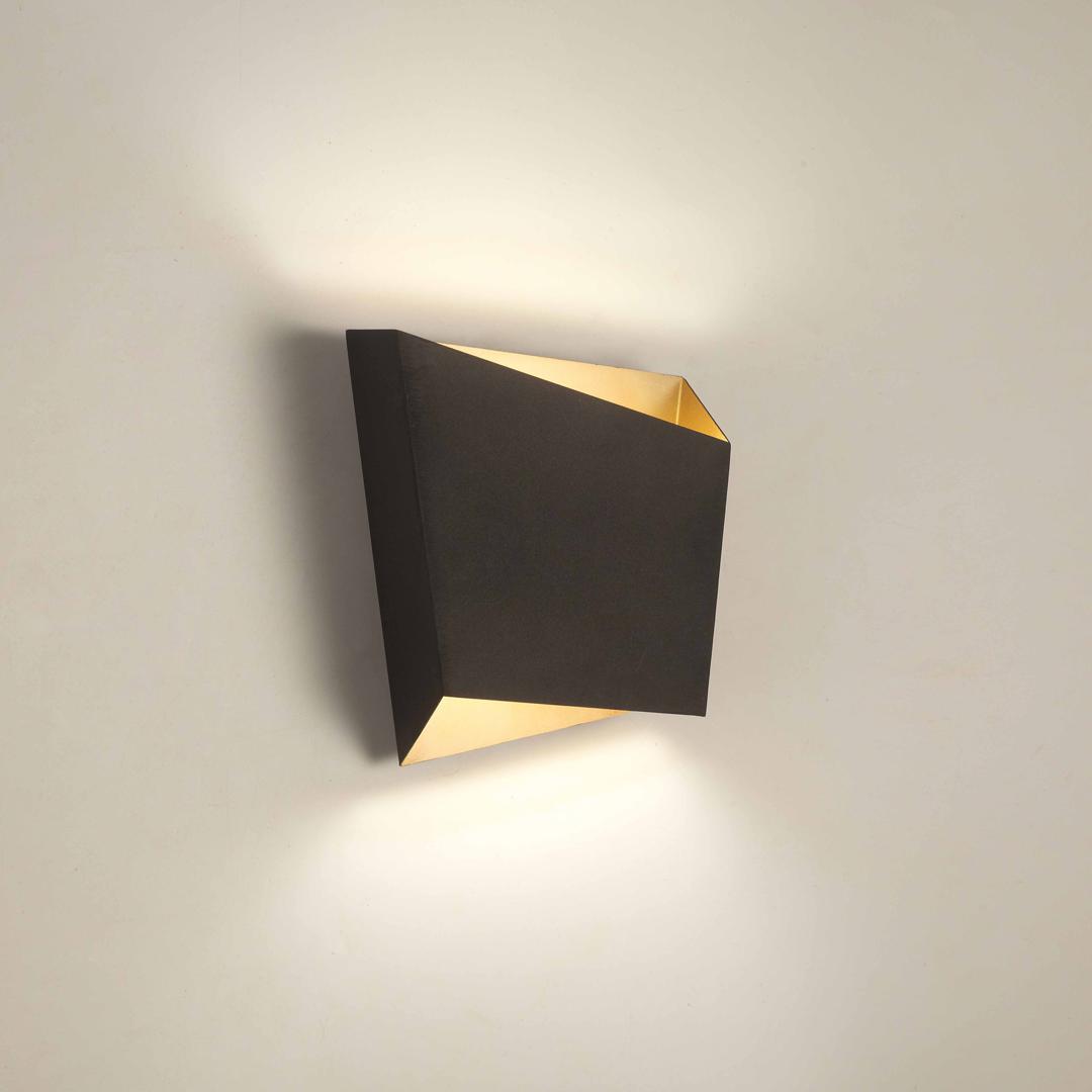 Бра Asimetric с плафоном, выполненным из металла черно-золотого цвета со светодиоидой лампой, рассеивающей свет вверх и вниз.