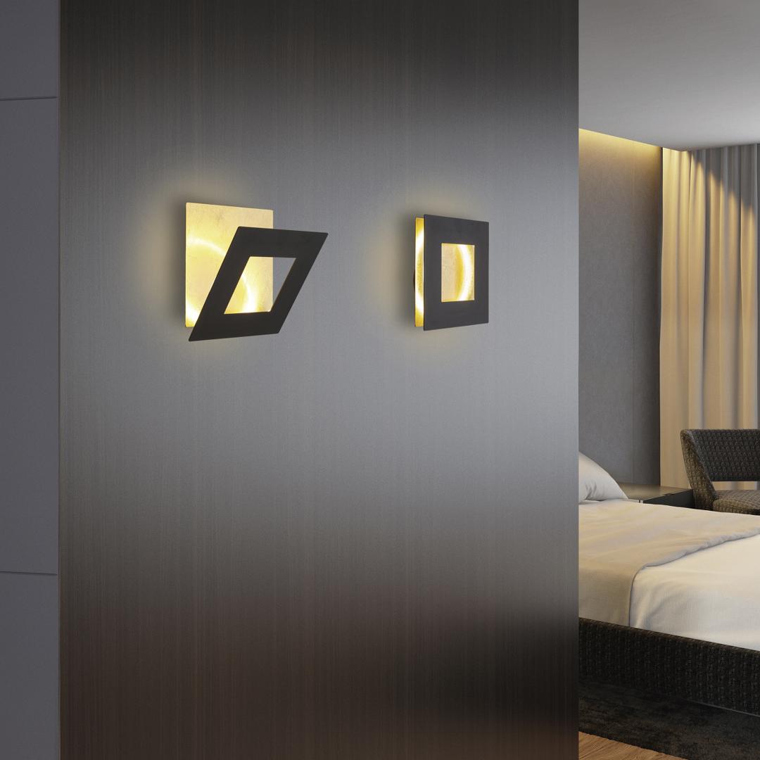 Настенные бра и потолочные светильник коллекции DALIA в своей основе имеют пластину с золотым покрытием и квадратные рамы со встроенными светодиодами, наложенные поверх основания. Главная идея и особенность коллекции DALIA заключается в возможности построения необычных световых композиций, изменяя угол наклона рам и обеспечивая индивидуальность вашему интерьеру. Коллекция предлагает декоративную легкость в своих формах и белой или черной отделке, делая неожиданный эффект отражения золота и симметрию светодиодов выдающейся деталью дизайна. Ансамбль из нескольких светильников DALIA идеально подойдет для гостиной, в которой использованы спокойные тона и натуральные материалы. Эта коллекция сдержанная, но в тоже время динамичная и способна придать вашему интерьеру особую индивидуальность.