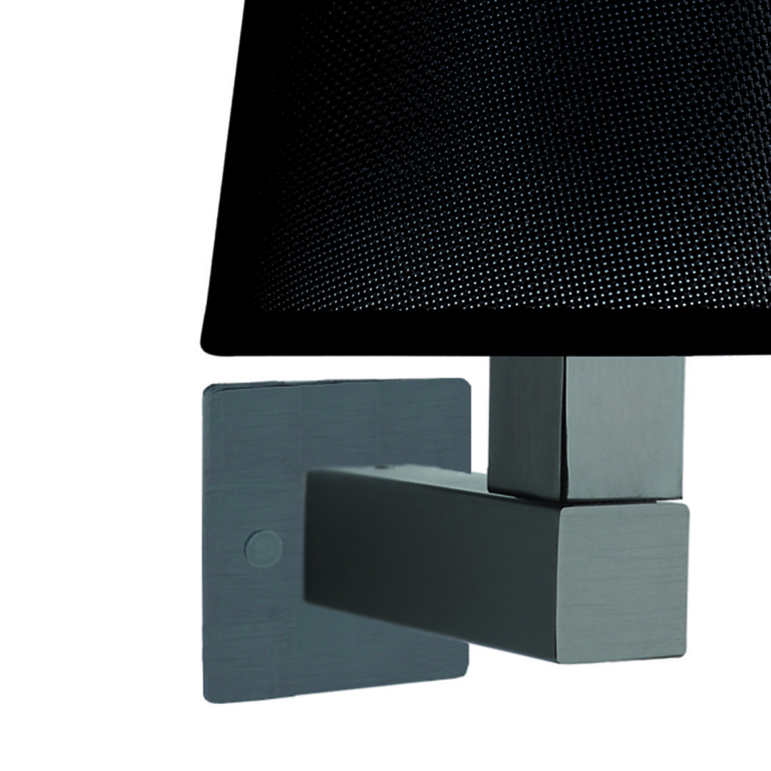 Бра Bahia, выполненное из металла с настенным креплением и тканевым абажуром с лампой рассеянного света. Доступно в черно-бронзовом цвете.