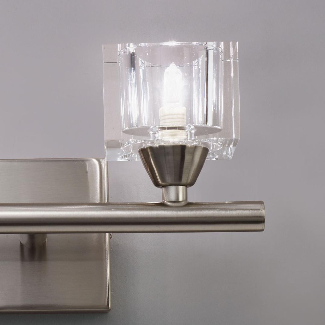 Стильный настенный светильник Cuadrax, выполненный из металла в матовой или блестящей хромированной отделке или в бронзовой отделке с плафонами из прозрачного или оптического стекла на выбор, придаст яркость и блеск любому помещению. Галогенные лампы Osram входят в комплект.