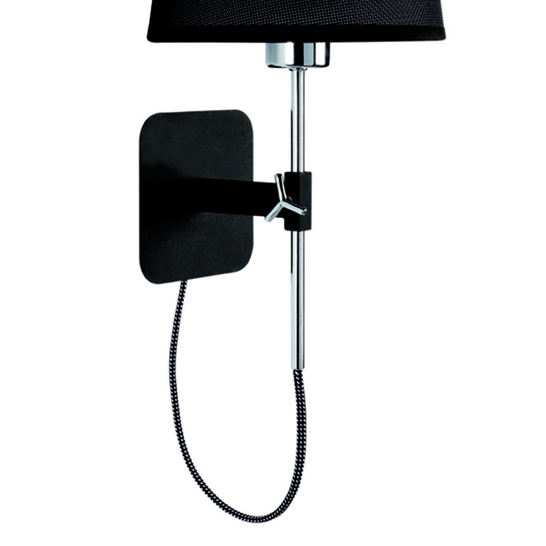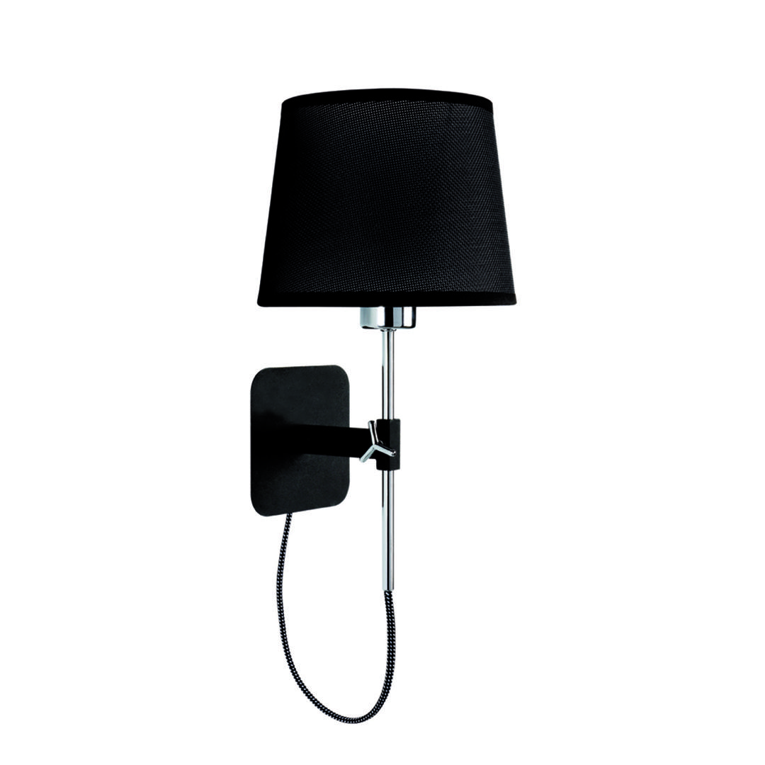 Бра HABANA, выполненное из металла с настенным креплением и тканевым абажуром с лампой рассеянного света. Доступно в черно-хромированном цвете.