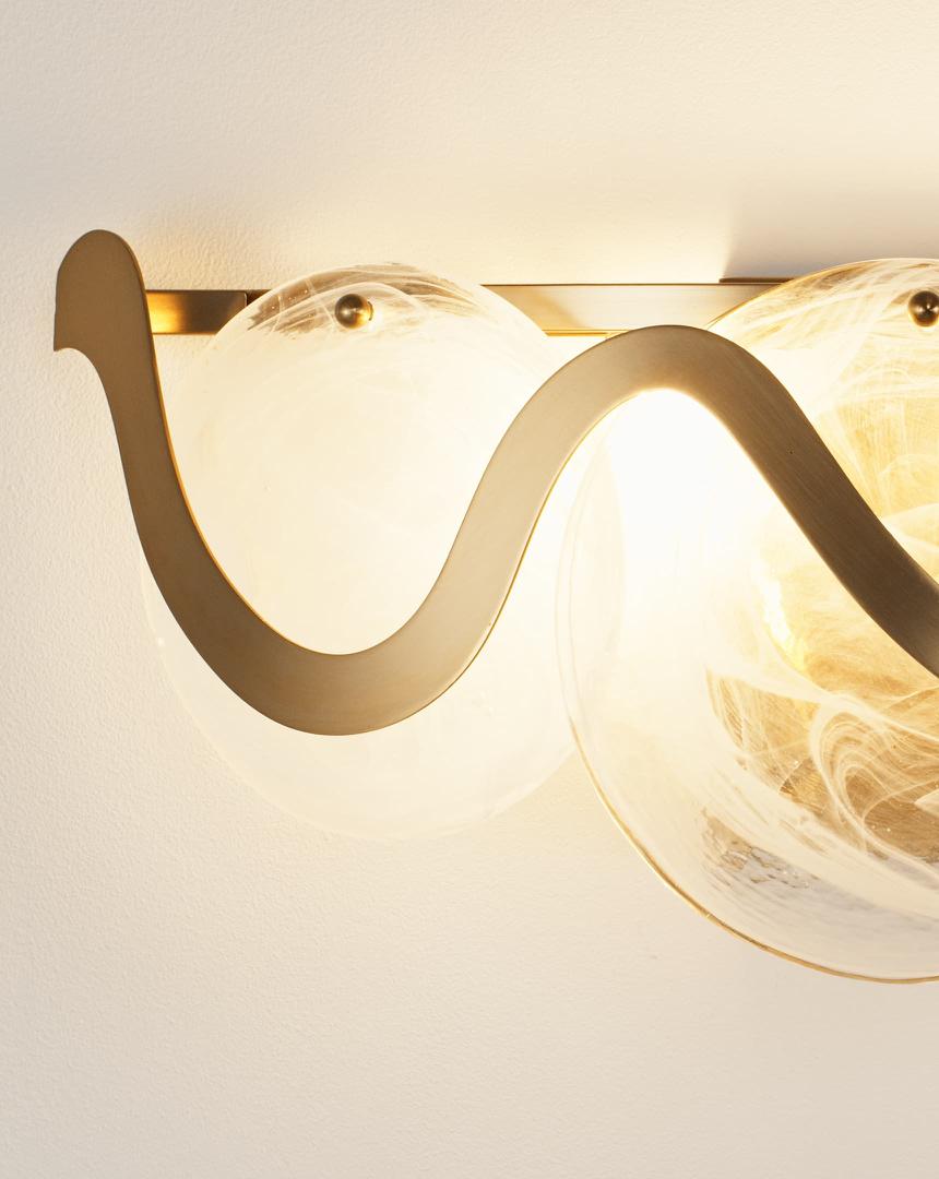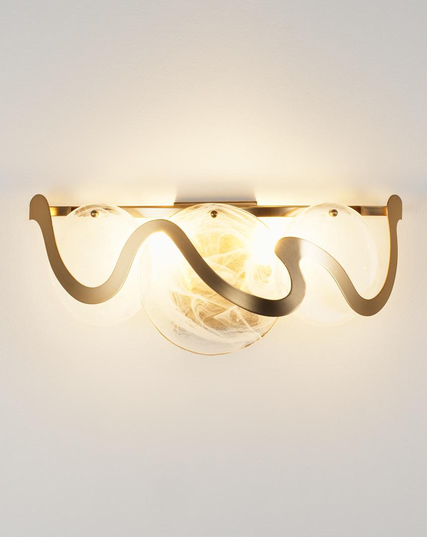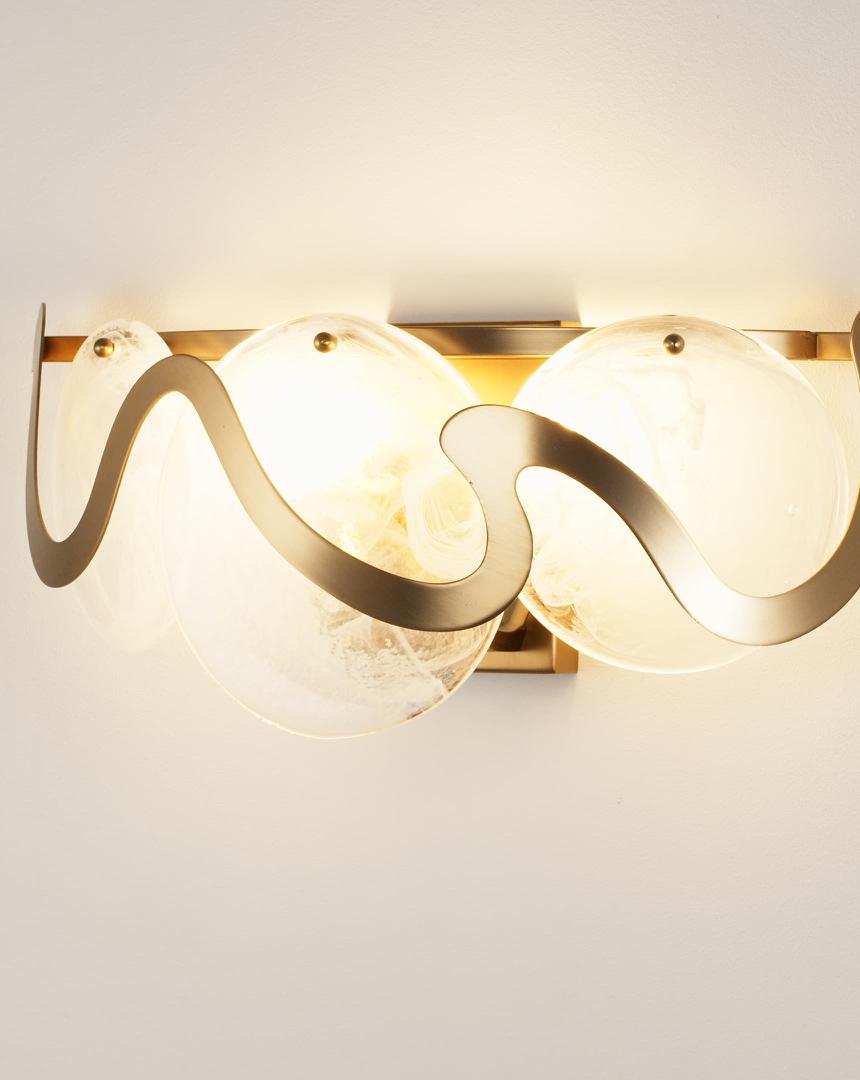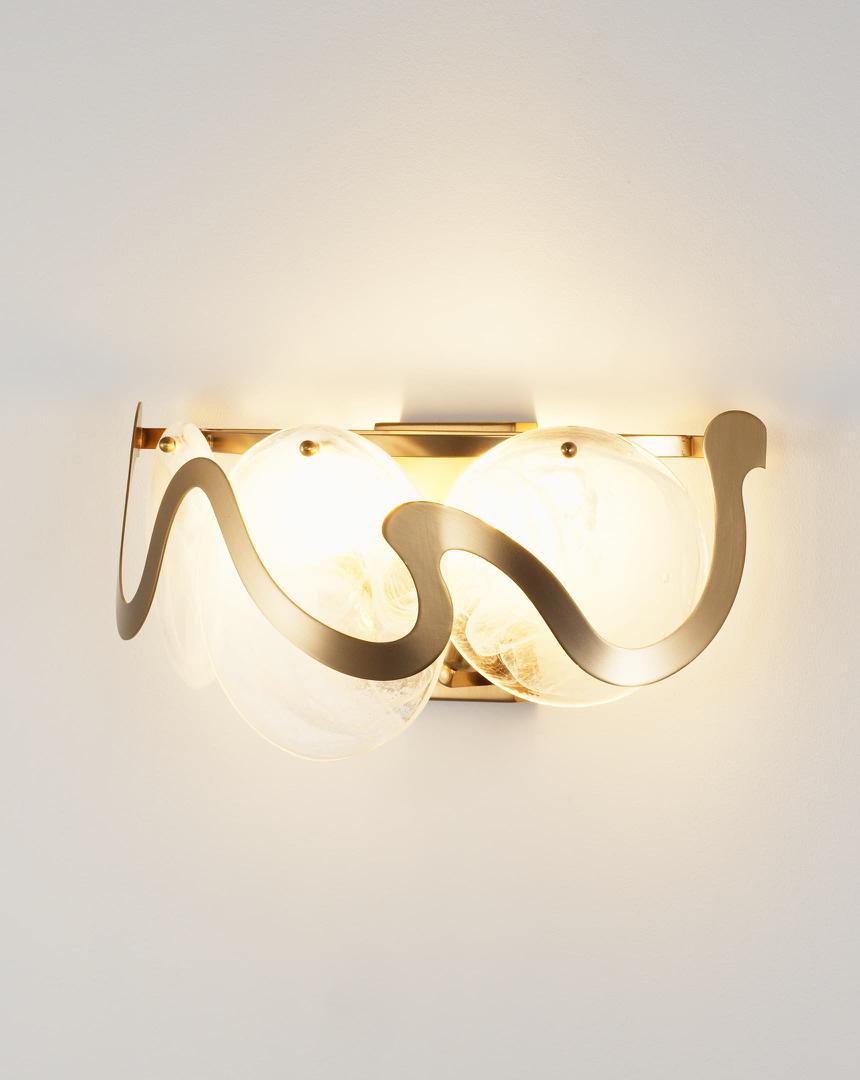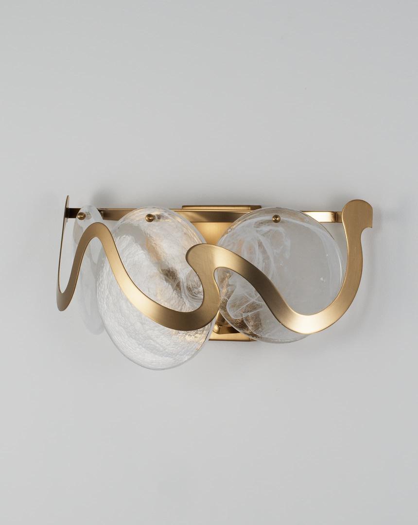 Бра настенный светильник для спальни, зала, коридора в стиле модерн Moderli V7073-2W Caribbean латунь полупрозрачное стекло